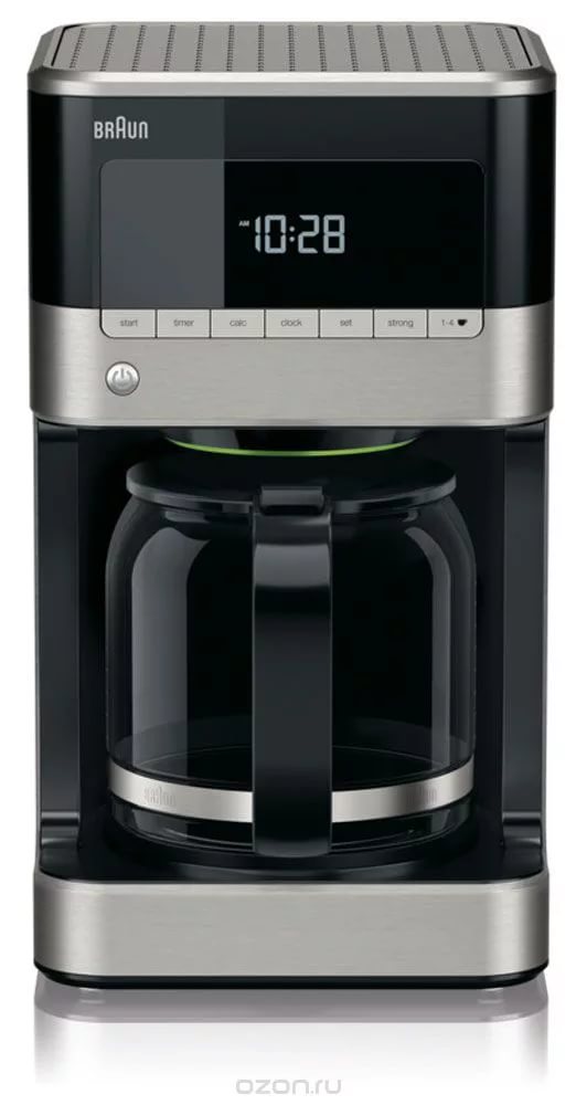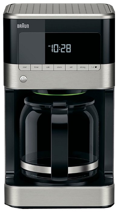 • LCD-дисплей делает управление кофеваркой удобным и несложным: вы можете сами выбрать крепость приготавливаемого напитка, сварить не 10, а всего 4 или даже 1 чашку кофе.