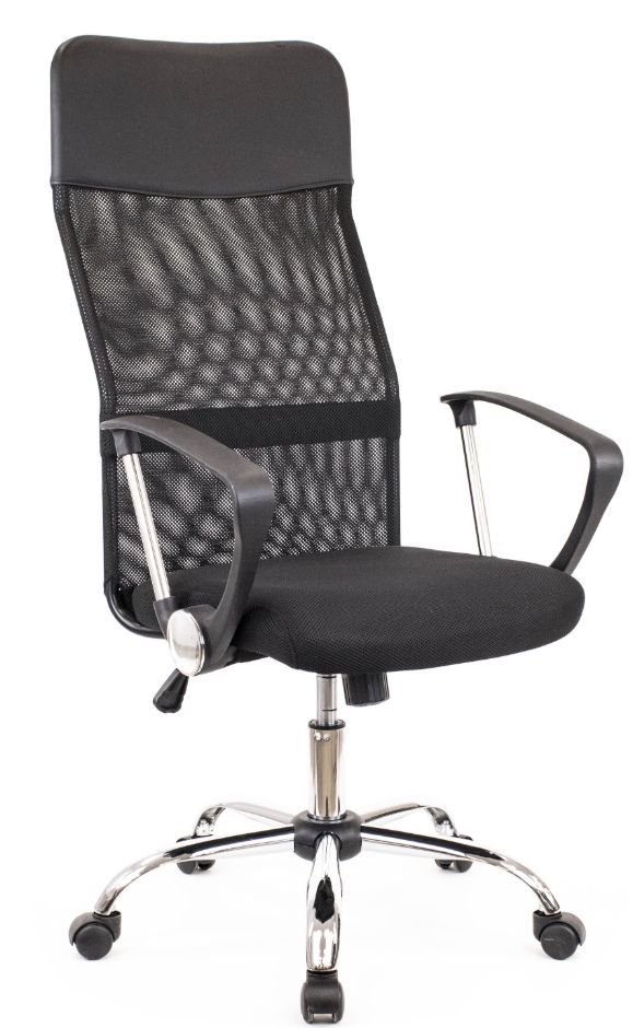 Подлокотники: Пластиковые. Подголовник .Поясничная поддержка . Механизм качания: ТопГан - механизм качания с возможностью фиксации кресла в рабочем положении. Крестовина: Хромированная сталь O 700 мм. Газ патрон: 3 категории (Germany DIN 4550). Ролики Стандарт BIFMA 5,1 (США). Ролик O 50мм. Для паркета. Каркас: Немонолитный. Материал обивки: Сетка+ткань. Материал набивки: Вспененный полиуретан плотностью 22-25 кг/куб.м. Тип кресла: Для персонала. Цвет: Черный. Допустимая нагрузк: 120 кг.