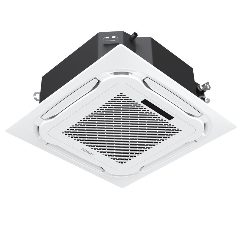Основные характеристики: Площадь помещения: 160 кв. м.: Инверторное управление: Нет: Уровень шума в/б, Дб: 43: Мощность охлаждения: 16.1 кВт: Охлаждающая способность, тыс. BTU: 60 (до 150-160 м.кв): Режим работы: Охлаждение и обогрев: Потребляемая мощность (охлаждение): 5.55 кВт: Потребляемая мощность (обогрев): 5.57 кВт: Уровень шума (внешний блок), Дб: 60: Бренд: Funai: Мощность обогрева: 17.6 кВт: Диапазон t наружного воздуха (холод), °C: -15 — 49: Диапазон t наружного воздуха (обогрев), °C: -15 — 24: Расход воздуха, м³/час: 1300: Класс Энергоэффективности (охлаждение/обогрев): C/D: Коэффициент эффективности COP: 3.16: Коэффициент эффективности EER: 2.9: Особенности: Цвет: белый: Управление: Wi-fi управление: Опция: Пульт дистанционного управления: Да: Особенности монтажа: Тип внутреннего блока: Кассетный: Диаметр жидкой магистрали, мм: 9.52: Диаметр газовой магистрали, мм: 19.05: Максимальная длина трассы: 50 м: Перепад высот: 30 м: Хладагент: R 410A: Электропитание: 380-420/3/50: Степень защиты: IPX0: Га