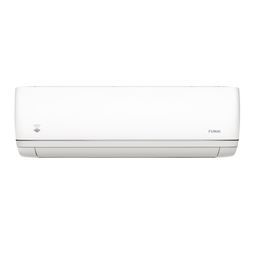 Основные: Бренд: Funai: Серия: Kadzoku Inverter: Тип товара: Настенная сплит-система: Страна бренда : Япония: Страна изготовитель: Китай: Производительность: Площадь обслуживания: до 20 (м2): Способность охлаждения: 08 (BTU): Мощность охлаждения: 2.4 (кВт): Мощность обогрева: 2.65 (кВт): Потребление на холод: 714 (Вт): Потребление на тепло: 716 (Вт): Уровень шума внутреннего блока: 20 дБ(А): Уровень шума наружного блока: 50 дБ(А): Расход свежего воздуха внутреннего блока: 240 (м3/ч): Расход комнатного воздуха внутреннего блока: 420 (м3/ч): Напряжение электропитания: 220-240/50/1 (В/Гц/Ф): Размеры: Размеры внутреннего блока: 811x278x198 (мм): Размеры наружного блока: 712x459x275 (мм): Вес внутреннего блока: 7.5 (кг): Вес наружного блока: 22.0 (кг): Max. длина медной трассы: 25 (м.п.): Диаметр воздуховода свежего воздуха: Нет: Диаметр жидкостной трубы: 6.35 (1/4"): Диаметр газовой трубы: 9.53 (3/8"): Функционал: Режим работы: Охлаждение+Обогрев: WiFi: Опция: Регулировка жалюзи с пульта (горизонтально): Есть: Са