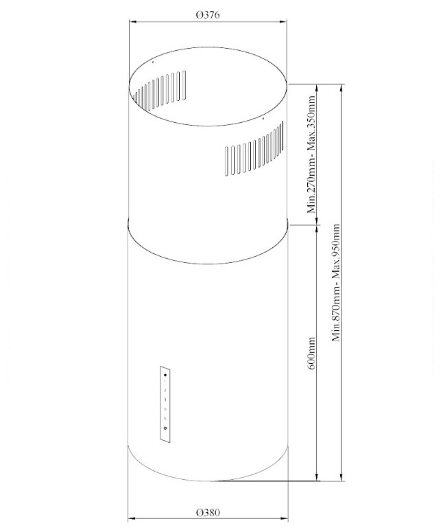форм-фактор: цилиндрическая, ширина: 38 см, глубина: 38 см, режимы работы: отвод / циркуляция, максимальная производительность: 950 м³/час, фильтр: жировой + угольный, тип управления: электронное, тип освещения: светодиодная лампа, максимальный уровень шума: 61 дБ, ширина встраивания: 38 см, диаметр патрубка воздуховода: 150 мм, потребляемая мощность: 240 Вт, дополнительные функции: таймер