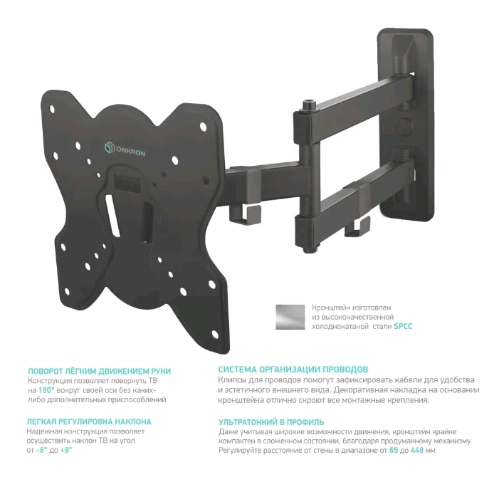 Много углов настройки,можно расположить телевизор на любой вкус,прост в монтаже. Достоинства: