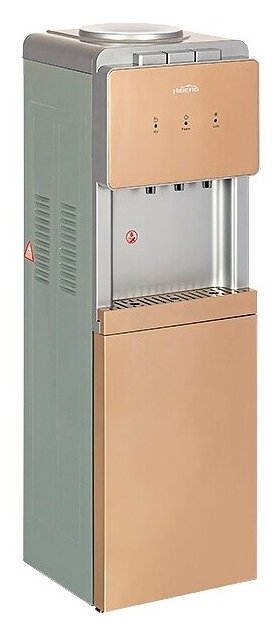 тип: кулер, напольный, тип охлаждения: компрессорное, верхняя установка бутылки, нагрев, мощность нагрева: 550 Вт, мощность охлаждения: 90 Вт, шкафчик для посуды, ширина: 31 см, глубина: 30 см, высота: 95 см