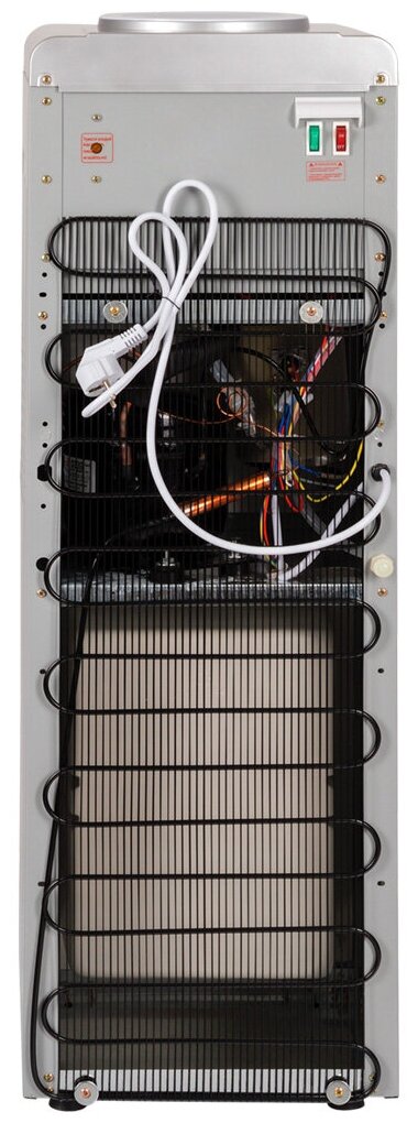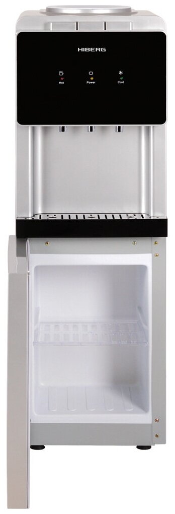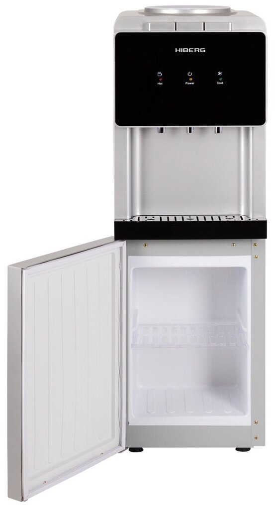 тип: кулер, напольный, тип охлаждения: компрессорное, верхняя установка бутылки, нагрев, мощность нагрева: 550 Вт, мощность охлаждения: 90 Вт, шкафчик для посуды, ширина: 31 см, глубина: 30 см, высота: 95 см, вес: 14 кг