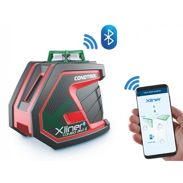 Лазерный нивелир CONDTROL XLiner Combo 360 G – лазерный нивелир нового поколения с горизонтальной развёрткой 360°. Возможность проецировать вертикаль, горизонталь, крест и наклон позволяет решать широкий спектр задач: установка перегородок, поклейка обоев, укладка плитки и т. д. XLiner Combo 360 G имеет функцию отвеса. Яркость зелёного луча воспринимается в 4 раза лучше, по сравнению с красным, что повышает эффективность использования нивелира при солнечном свете. Управление с помощью приложения Лазерный нивелир XLiner Combo 360 G оснащен модулем Bluetooth. Переключение плоскостей, контроль за интенсивностью излучения осуществляется с помощью установленного на смартфон или планшет бесплатного приложения Xliner Remote. Благодаря этой уникальной инновационной функции вы сможете управлять прибором дистанционно, не покидая рабочее место. Скачать ПО можно в магазинах приложений Google Play и App Store. Зелёный лазер XLiner Combo 360 G оснащен зелёным лазером с длиной волны 520 нм, который воспринимается в 4 раза