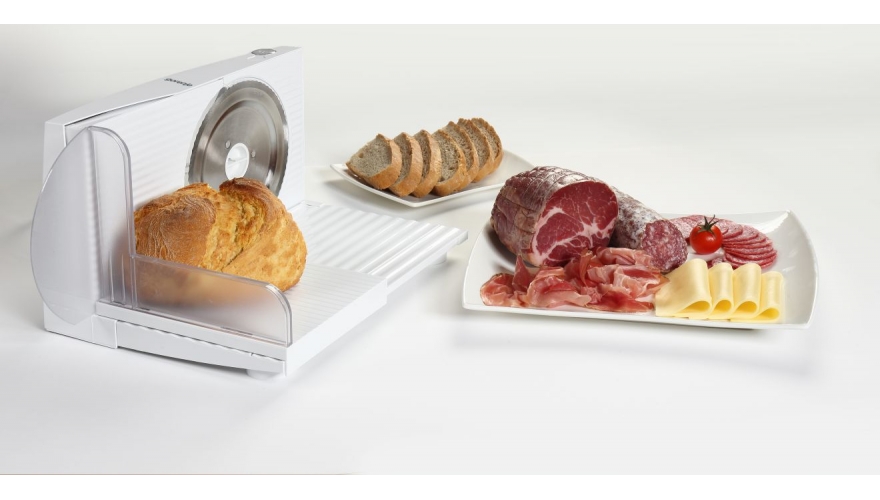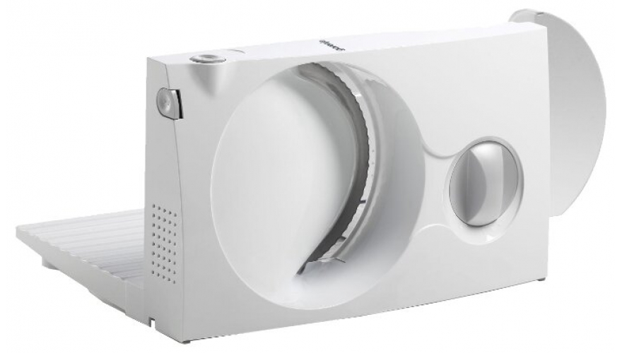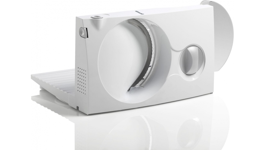 ломтерезка; мощность 110 Вт; держатель для продуктов; складной корпус; материал корпуса: пластик; материал ножа: нержавеющая сталь; максимальная толщина нарезки 17 мм