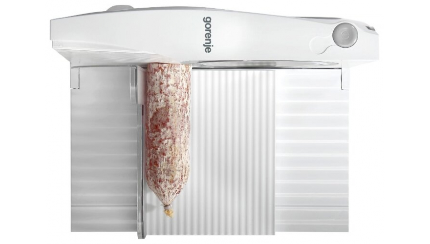 Режет жёсткую конскую колбасу, привезенную с юга. Лёгкая продуманная сборка перед резкой. Недостатки: