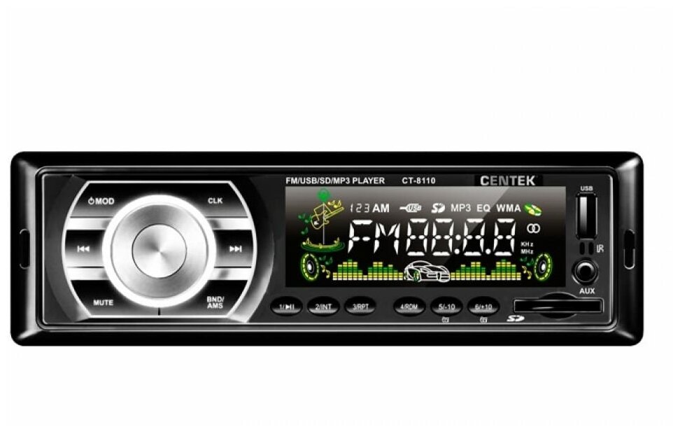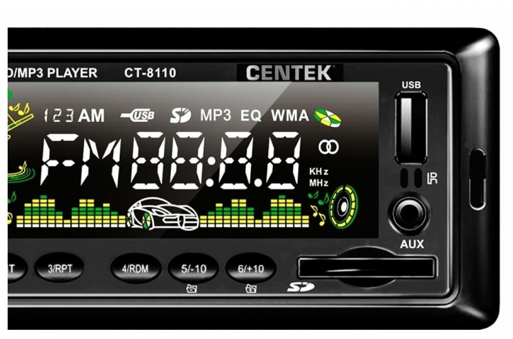 Автомагнитола Centek СТ-8110 <4х50 Вт> ПУЛЬТ, SD/MMC/USB, MP3, цветной LED, память 18 станций