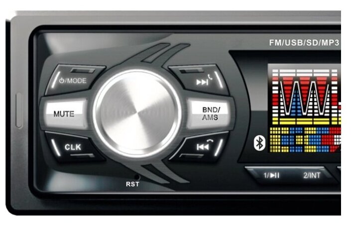 Bluetooth; USB и AUX на передней панели; максимальная мощность 4 x 50 Вт; радиоприемник; выходы: аудиовыход