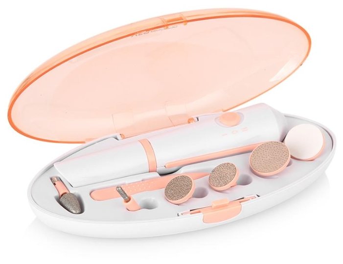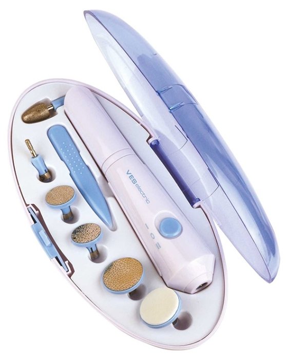 для маникюра, для педикюра; направление вращения: прямое; ступенчатая регулировка скорости вращения; комплектация: пенал для фрез, фрезы
