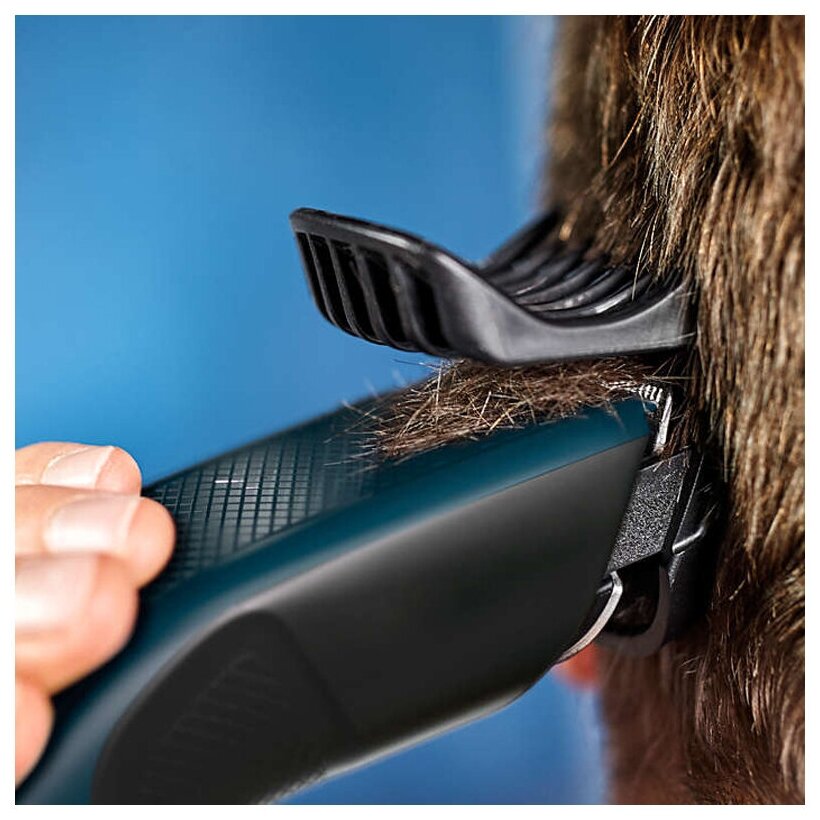 Безупречная прическа без лишних усилий. Стрижка в два раза быстрее* благодаря технологии DualCut и самозатачивающимся лезвиям. Технология Trim-n-Flow предотвращает засорение гребня: создавайте прическу, ни на что не отвлекаясь.