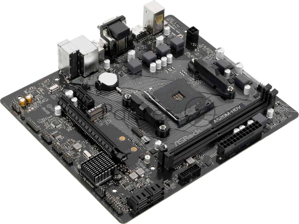 A520M-HDV, AM4, AMD A520, 2xDDR4, 4xSATA, 1xM.2, 1xPCIe 3.0 x16, 1xPCIe 3.0 x1, 1xDVI-D, 1xHDMI, 1xVGA, 1x 1Gb LAN, 3x3.5 мм, 7.1, mATX