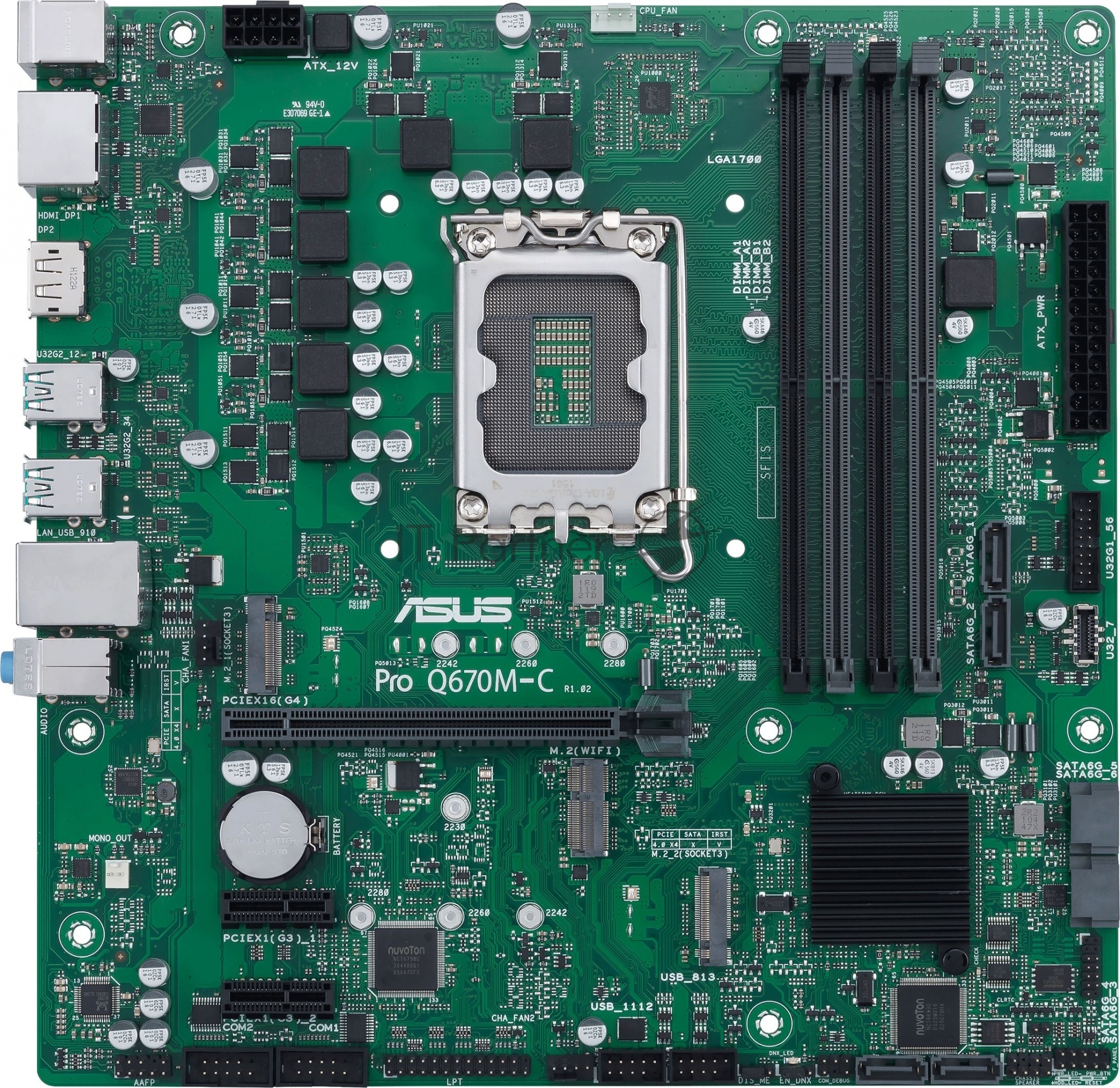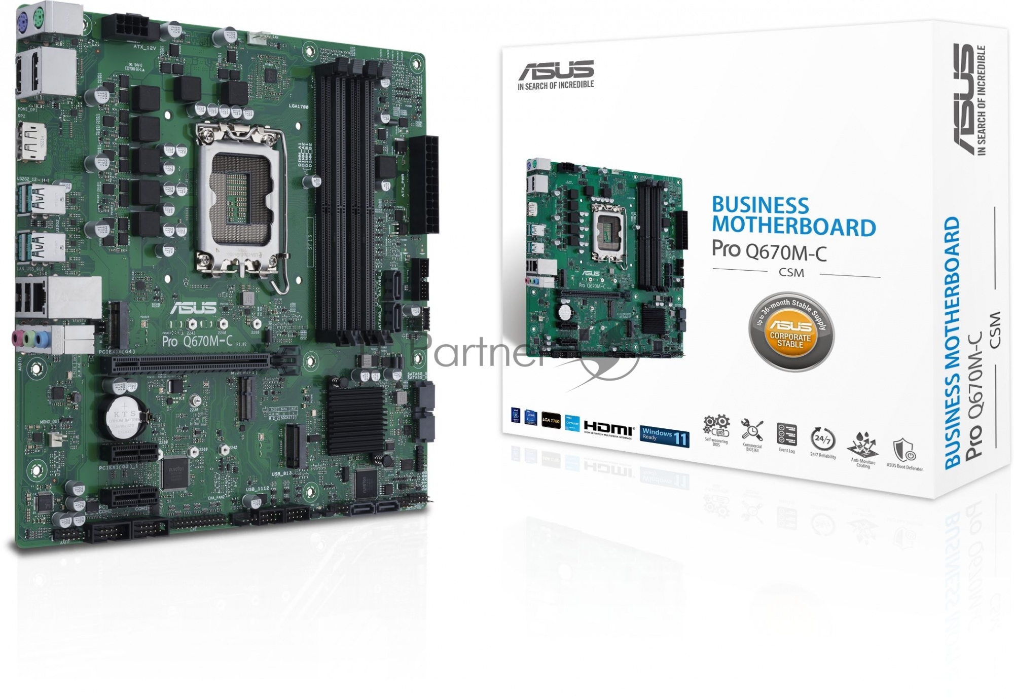 Pro Q670M-C-CSM, LGA 1700, Intel Q670, 4xDDR5, 6xSATA, 2xM.2, 1xPCIe 4.0 x16, 1xHDMI, 2xDP, 1x1Gb LAN, 4xUSB-A 3.2 Gen 2, 3x3.5 мм, 7.1, mATX