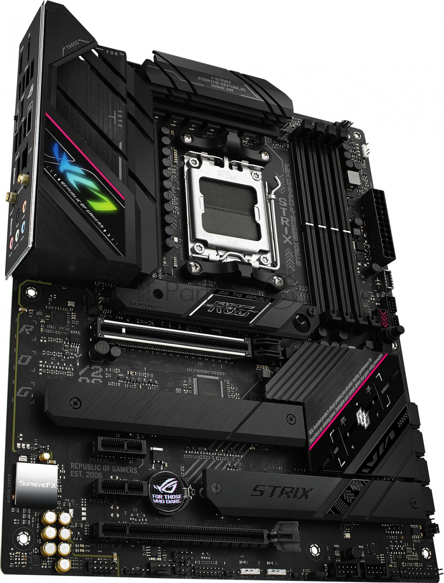 ROG STRIX B650E-F GAMING WIFI, AM5, AMD B650, 4xDDR5, 4xSATA, 3xM.2, 1xPCI-E 5.0 x16, 1xPCI-E 4.0 x4, 2xPCI-E x1, 1xHDMI, 1xDP, 1x 2.5Gb LAN, 4xUSB-A 2.0, 4xUSB-A 3.2 Gen 1, 2xUSB-A 3.2 Gen 2, 1xUSB-C 3.2 Gen 2, 1xUSB-C 3.2 Gen 2x2, 5x3.5 мм, 7.1, ATX