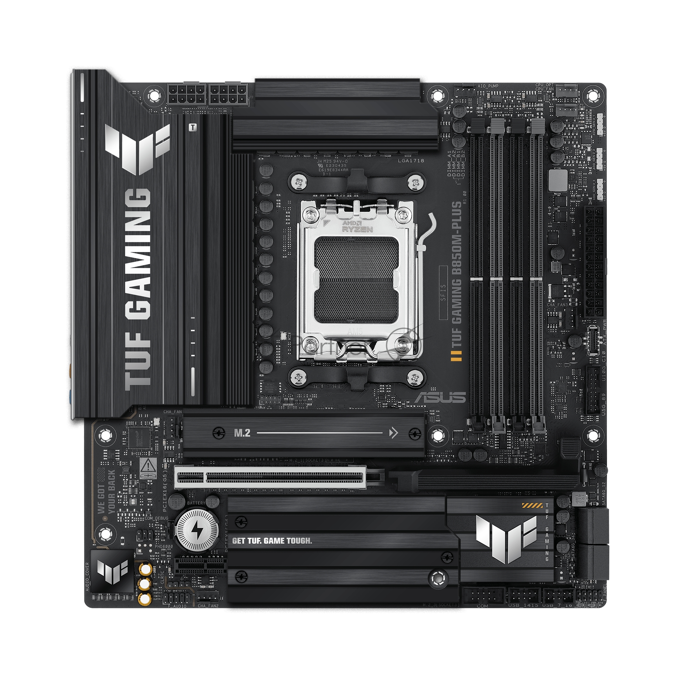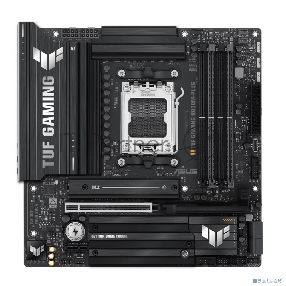 TUF Gaming B850M-Plus, AM5, AMD B850, 4xDDR5, 4xSATA, 3xM.2, 1xPCIe 5.0 x16, 1xPCIe 4.0 x4, 1xPCIe x1, 1xDP, 1xHDMI, 1x2.5Gb LAN, 4xUSB 2.0, 4xUSB 3.2 Gen 1, 3xUSB 3.2 Gen 2, 1xUSB-C, 3x3.5 мм, 7.1, mATX