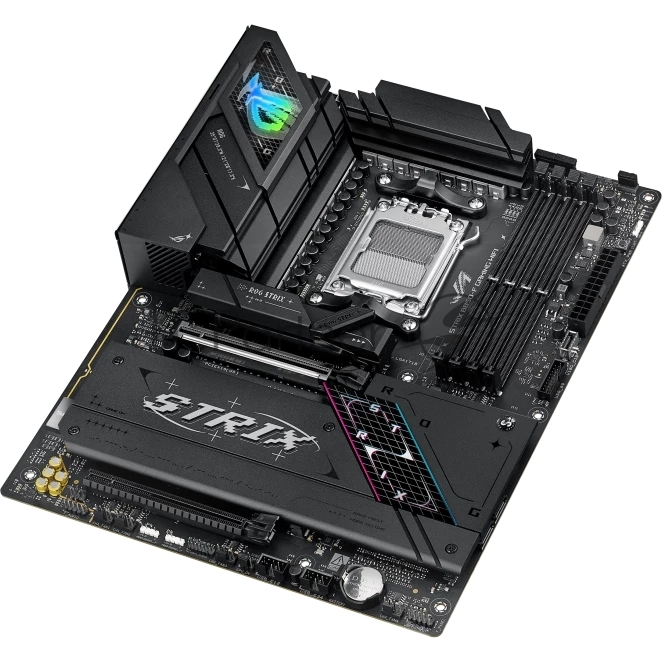 ROG STRIX B850-F GAMING WIFI, AM5, AMD B850, 4xDDR5, 2xSATA, 4xM.2, 1xPCIe 5.0 x16, 1xPCIe 4.0 x16, 1xPCIe x4, 1xDP, 1xHDMI, 1x2.5Gb LAN, 1xUSB-C 20Gbps, 1xUSB-C 10Gbps, 3xUSB-A 10Gbps, 4xUSB 5Gbps, 4xUSB 2.0, 3x3.5 мм, 7.1, ATX