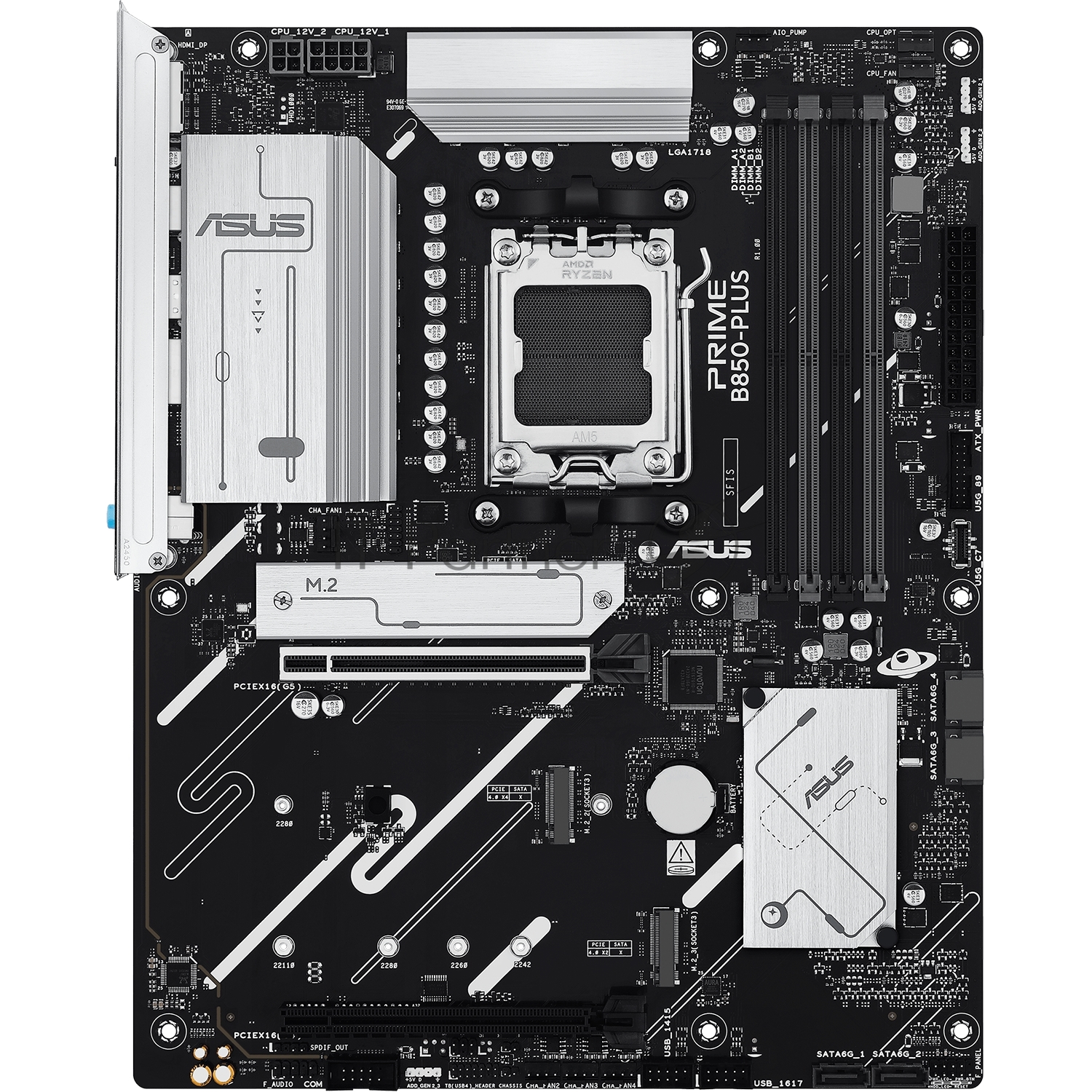 PRIME B850-PLUS, AM5, AMD B850, 4xDDR5, 4xSATA, 3xM.2, 1xPCIe 5.0 x16, 1xPCIe 4.0 x16, 1xDP, 1xHDMI, 1x2.5Gb LAN, 4xUSB-A 10Gbps, 1xUSB-C 10Gbps, 2xUSB-A 5Gbps, 2xUSB-A 2.0, 3x3.5 мм, 7.1, ATX