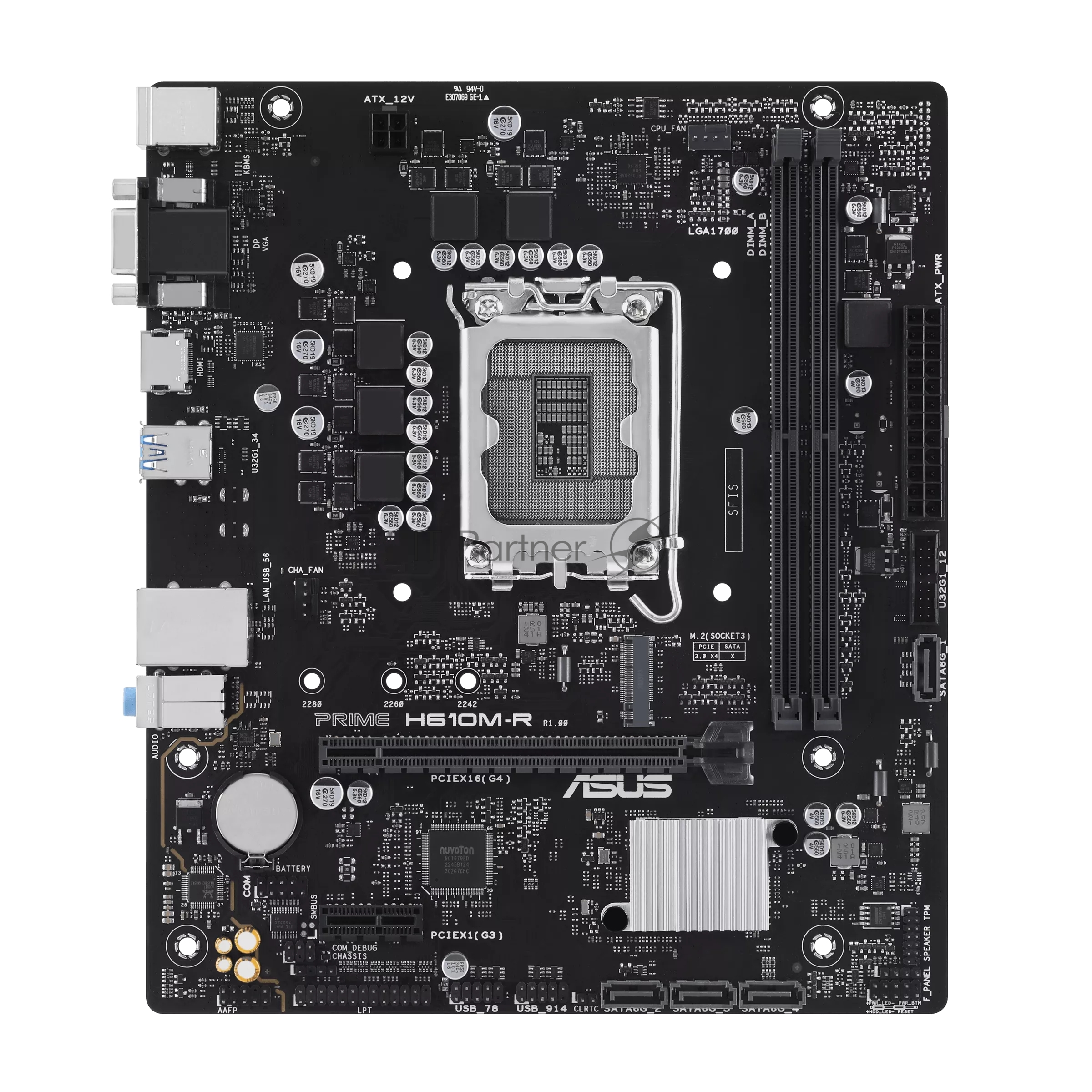 PRIME H610M-R-SI, LGA 1700, Intel H610, 2xDDR5, 4xSATA, 1xM.2, 1xPCIe 4.0 x16, 1x1Gb LAN, 2xUSB-A 2.0, 2xUSB-A 3.2 Gen 1, 1xVGA, 1xHDMI, 1xDP, 3x3.5 мм, 1xRS-232, 1xLPT, 7.1, mATX