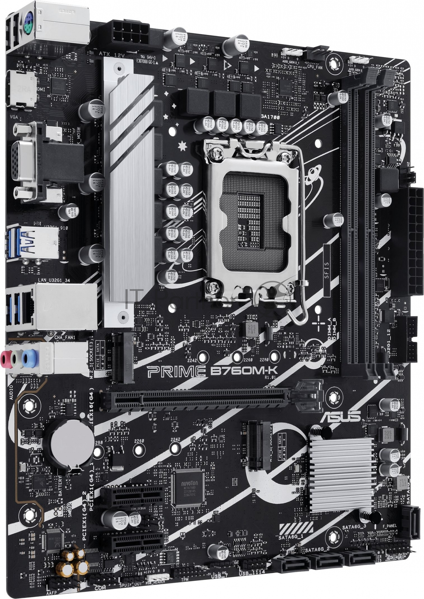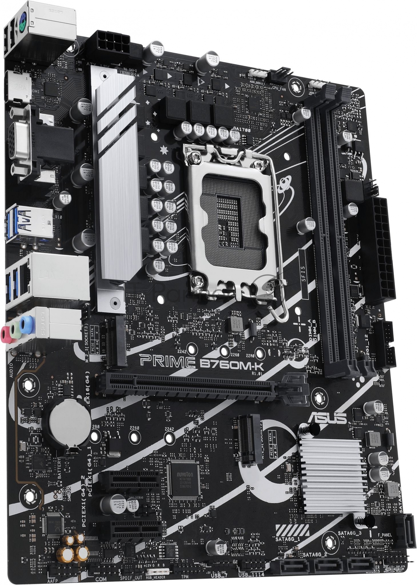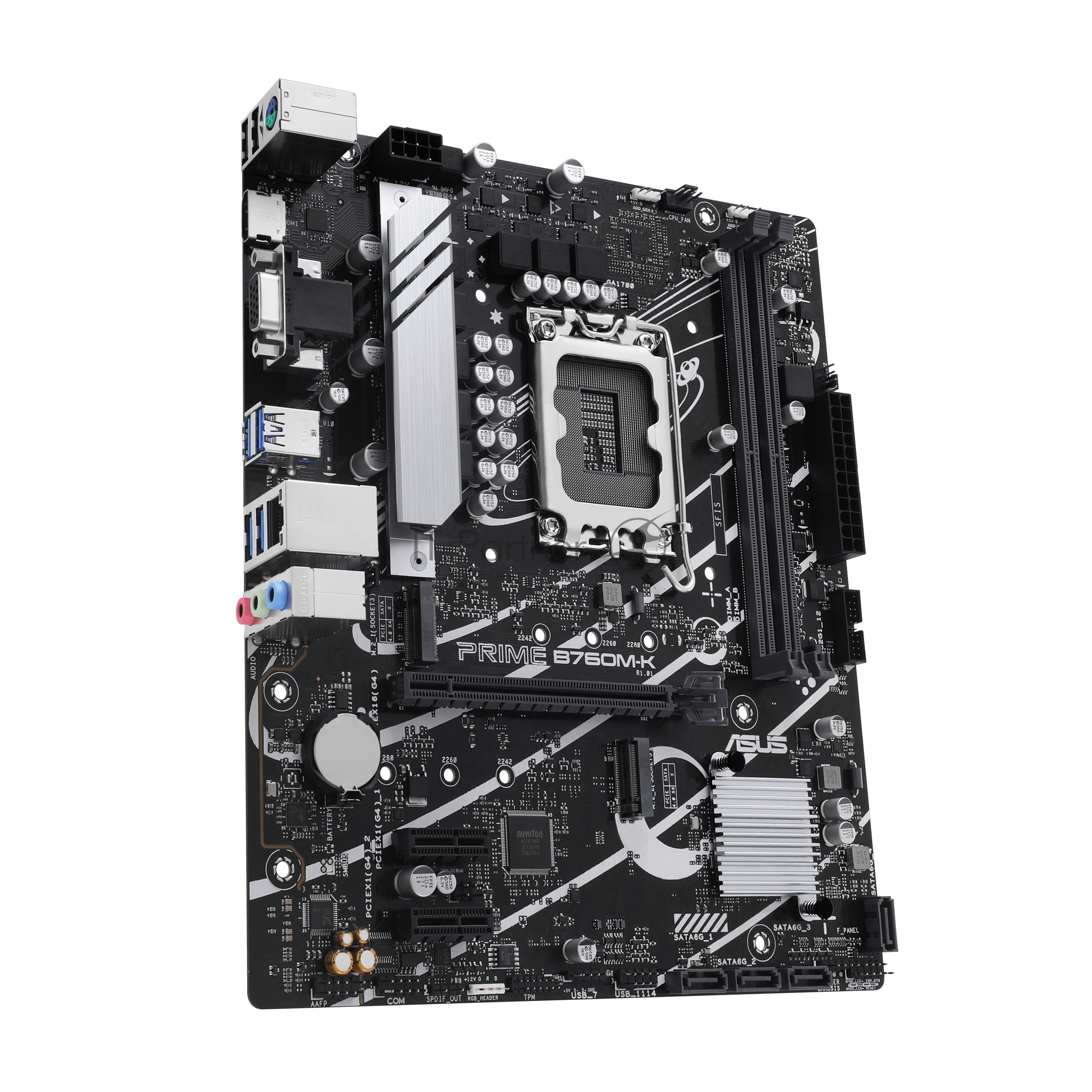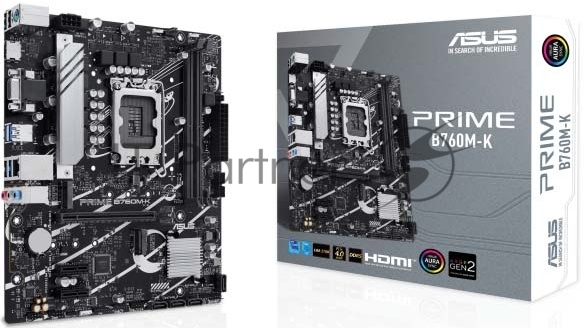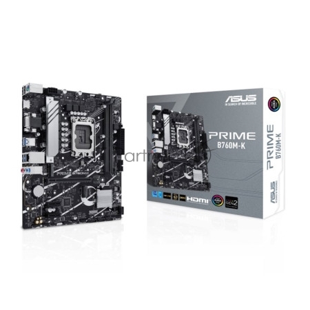 PRIME B760M-K, LGA 1700, Intel B760, 2xDDR5, 4xSATA, 2xM.2, 1xPCIe 4.0 x16, 2xPCIe x1, 1xHDMI, 1xVGA, 1x 2.5Gb LAN, 2xUSB-A 3.2 Gen 1, 2xUSB-A 2.0, 3x3.5 мм, 7.1, mATX
