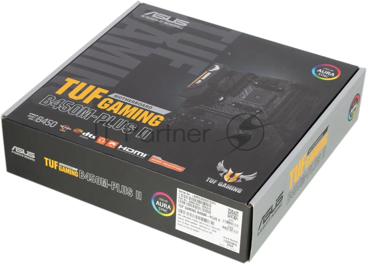 TUF GAMING B450M-PLUS II, AM4, AMD B450, 4xDDR4, 6xSATA, 1xM.2, 1xPCIe 3.0 x16, 1xPCIe 2.0 x16, 1xPCIe x1, 1xHDMI, 1xDVI-D, 1x 1Gb LAN, 2xUSB-A 3.2 Gen 1, 1xUSB-A 3.2 Gen 2, 2xUSB-A 2.0, 1xUSB-C 3.2 Gen 1, 3x3.5 мм, 7.1, mATX