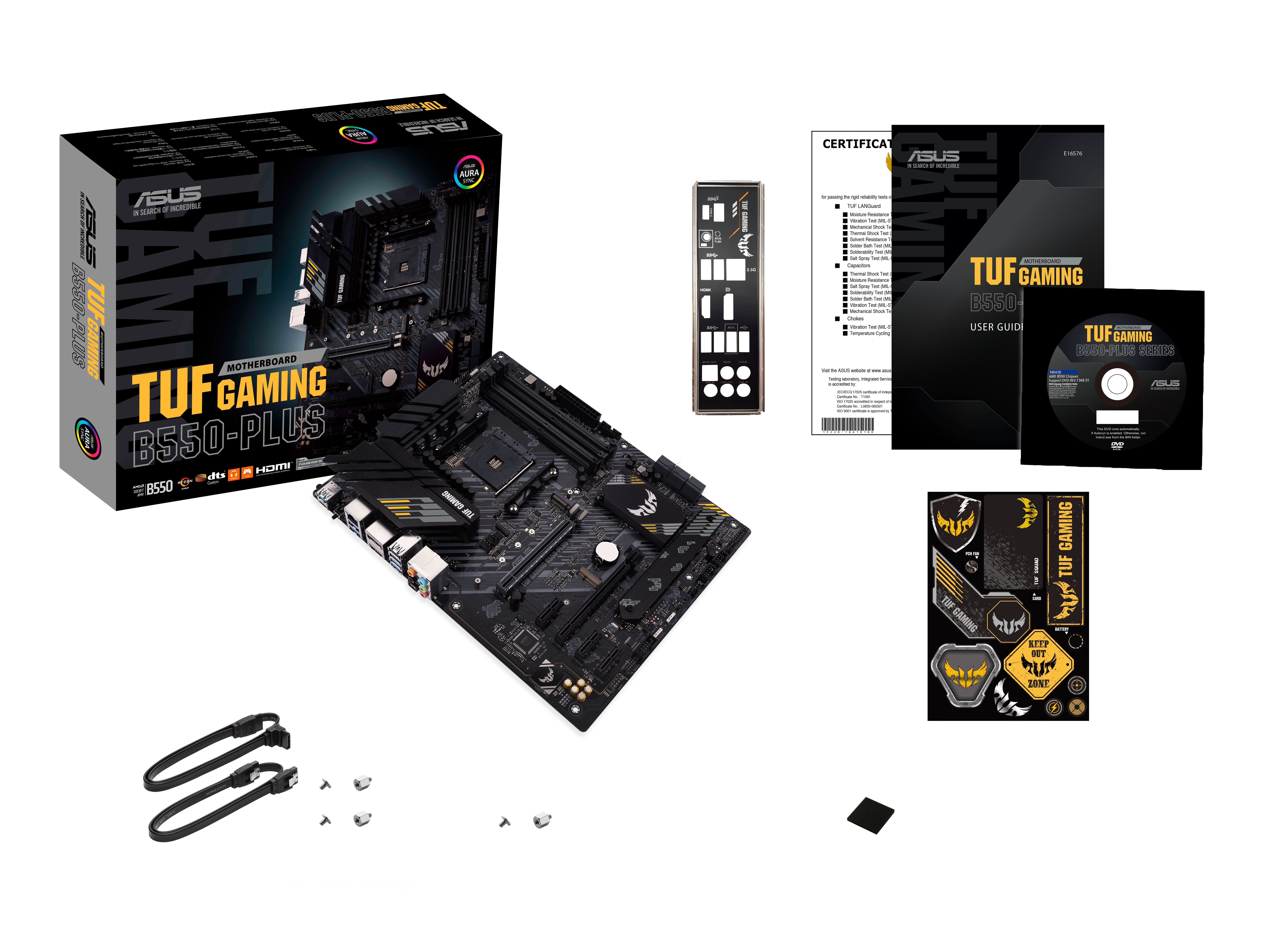 TUF GAMING B550-PLUS, AM4, AMD B550, 4xDDR4, 6xSATA, 2xM.2, 1xPCIe 4.0 x16, 1xPCIe 3.0 x16, 3xPCIe x1, 1xHDMI, 1xDP, 1x 2.5Gb LAN, 4xUSB-A 3.2 Gen 1, 1xUSB-A 3.2 Gen 2, 2xUSB-A 2.0, 1xUSB-C 3.2 Gen 2, 5x3.5 мм, 7.1, ATX