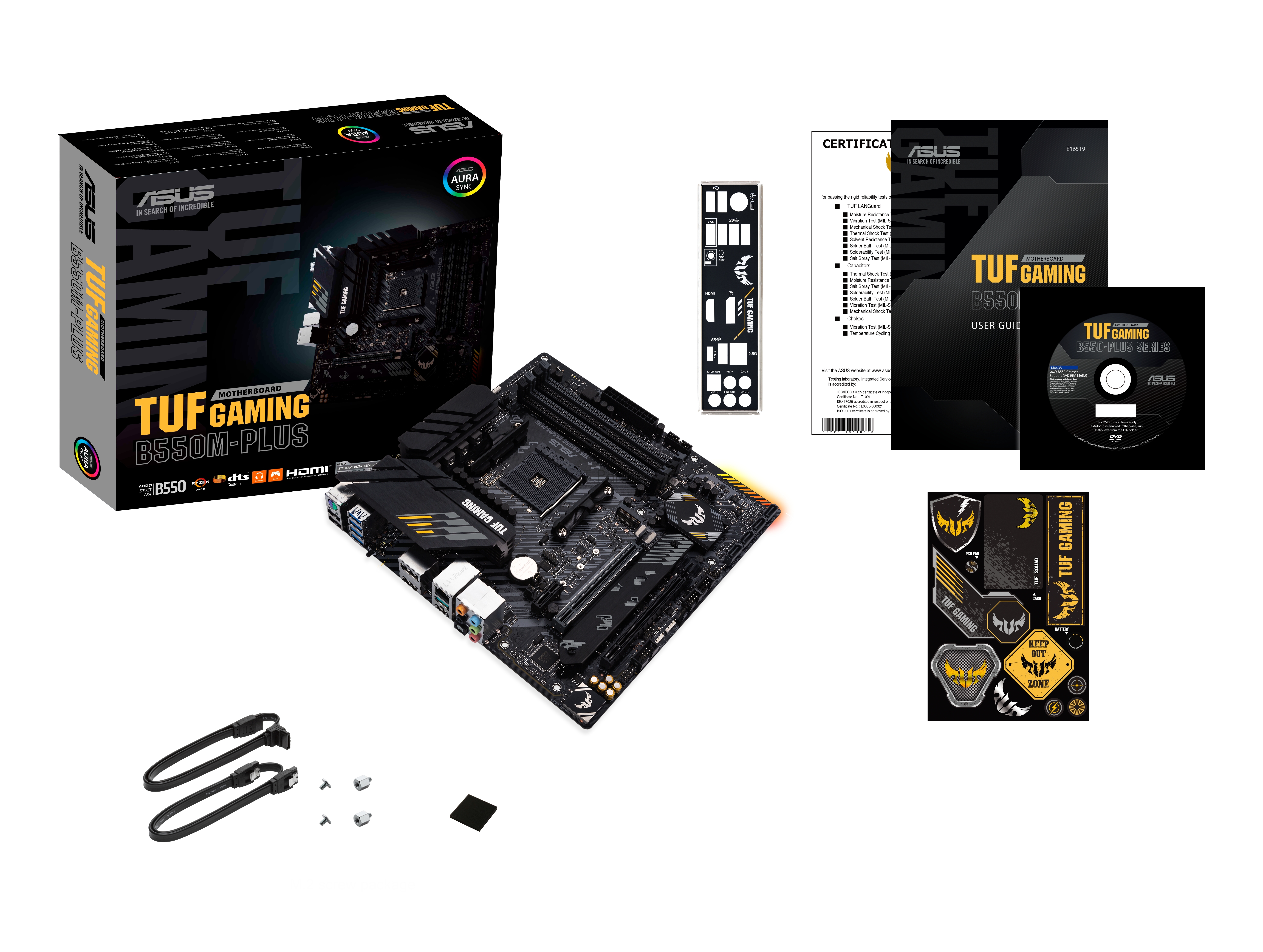 TUF GAMING B550M-PLUS, AM4, AMD B550, 4xDDR4, 4xSATA, 2xM.2, 1xPCIe 4.0 x16, 1xPCIe 3.0 x16, 1xPCIe x1, 1xHDMI, 1xDP, 1x 2.5Gb LAN, 4xUSB-A 3.2 Gen 1, 1xUSB-A 3.2 Gen 2, 2xUSB-A 2.0, 1xUSB-C 3.2 Gen 2, 5x3.5 мм, 7.1, mATX