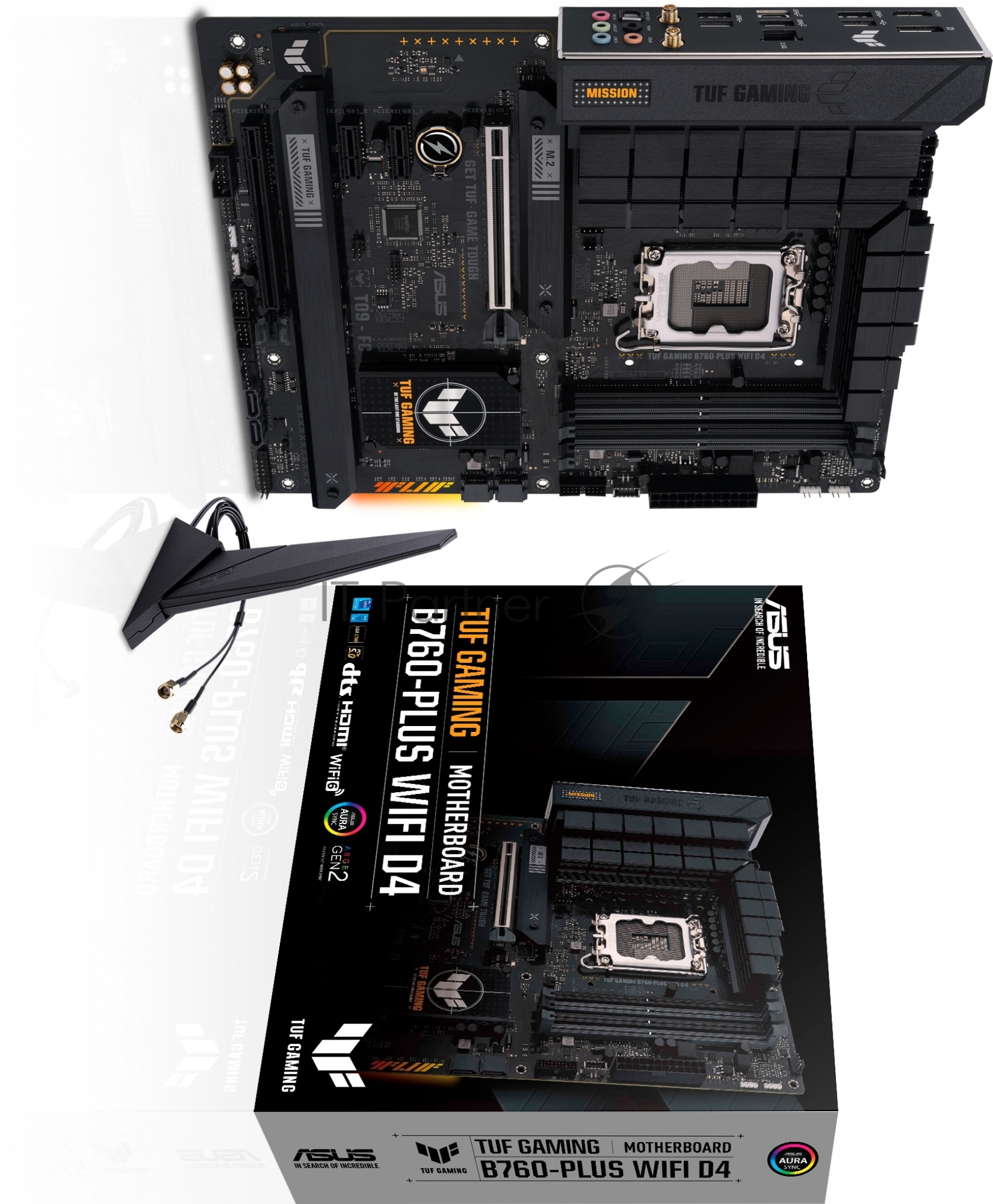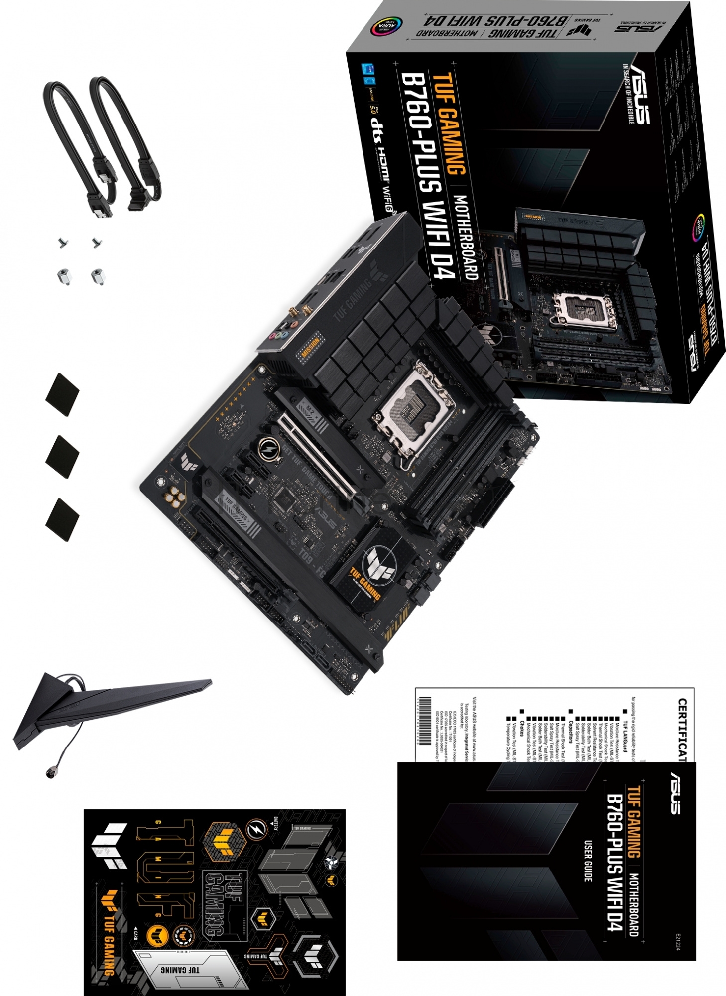 TUF GAMING B760-PLUS WIFI D4, LGA 1700, Intel B760, 4xDDR4, 4xSATA, 3xM.2, 1xPCI-E 5.0 x16, 1xPCI-E 3.0 x4, 1xUSB-A 3.2 Gen 2, 3xUSB-A 3.2 Gen 1, 1xUSB-C 3.2 Gen 2x2, 1x2.5Gb LAN, 5x3.5 мм, 7.1, Wi-Fi 6, Bluetooth 5.2, Standard-ATX