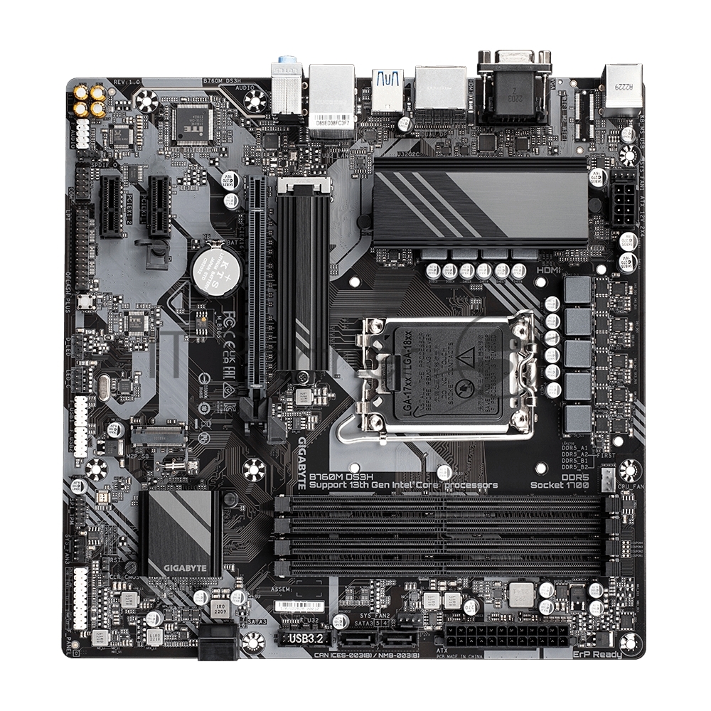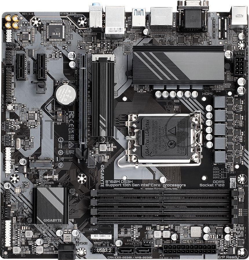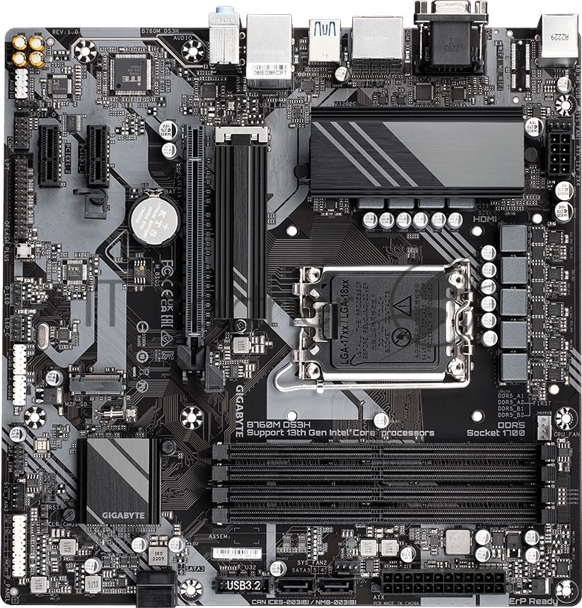B760M DS3H, LGA 1700, Intel B760, 4xDDR5, 4xSATA, 2xM.2, 1xPCIe 4.0 x16, 2xPCIe x1, 1xHDMI, 1xVGA, 2xDP, 1x 2.5Gb LAN, 3xUSB-A 3.2 Gen 1, 1xUSB-C 3.2 Gen 2, 2xUSB-A 2.0, 3x3.5 мм, 7.1, mATX