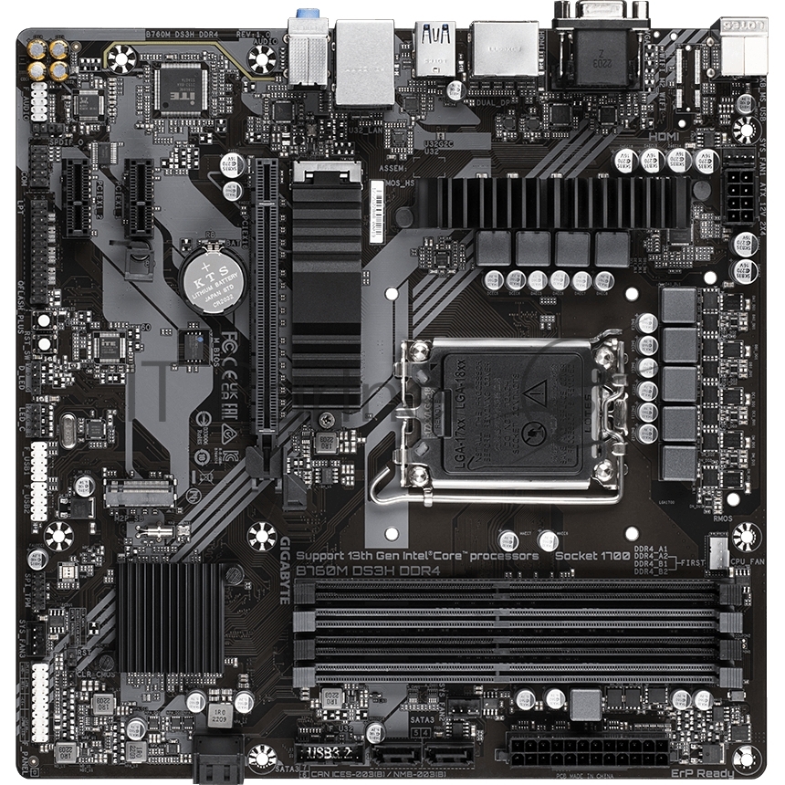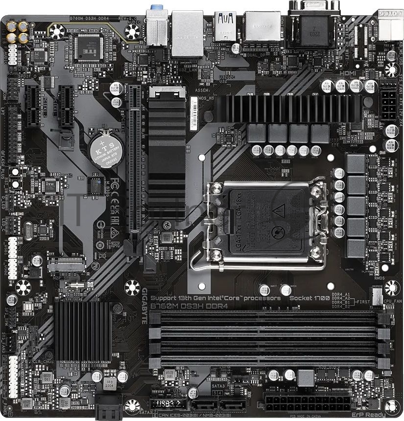 B760M DS3H DDR4, LGA 1700, Intel B760, 4xDDR4, 4xSATA, 2xM.2, 1xPCIe 4.0 x16, 2xPCIe x1, 1xHDMI, 1xDP, 1xVGA, 1x 2.5Gb LAN, 3xUSB-A 3.2 Gen 1, 1xUSB-C 3.2 Gen 2, 2xUSB-A 2.0, 3x3.5 мм, 7.1, mATX