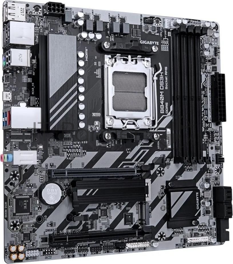B840M DS3H, AM5, AMD B840, 4xDDR5, 4xSATA, 2xM.2, 1xPCIe 4.0 x16, 1xPCIe 3.0 x4, 2xDP, 1xHDMI, 1x2.5Gb LAN, 3xUSB-A 5Gbps, 8xUSB-A 2.0, 1xUSB-C 5Gbps, 3x3.5 мм, 7.1, mATX