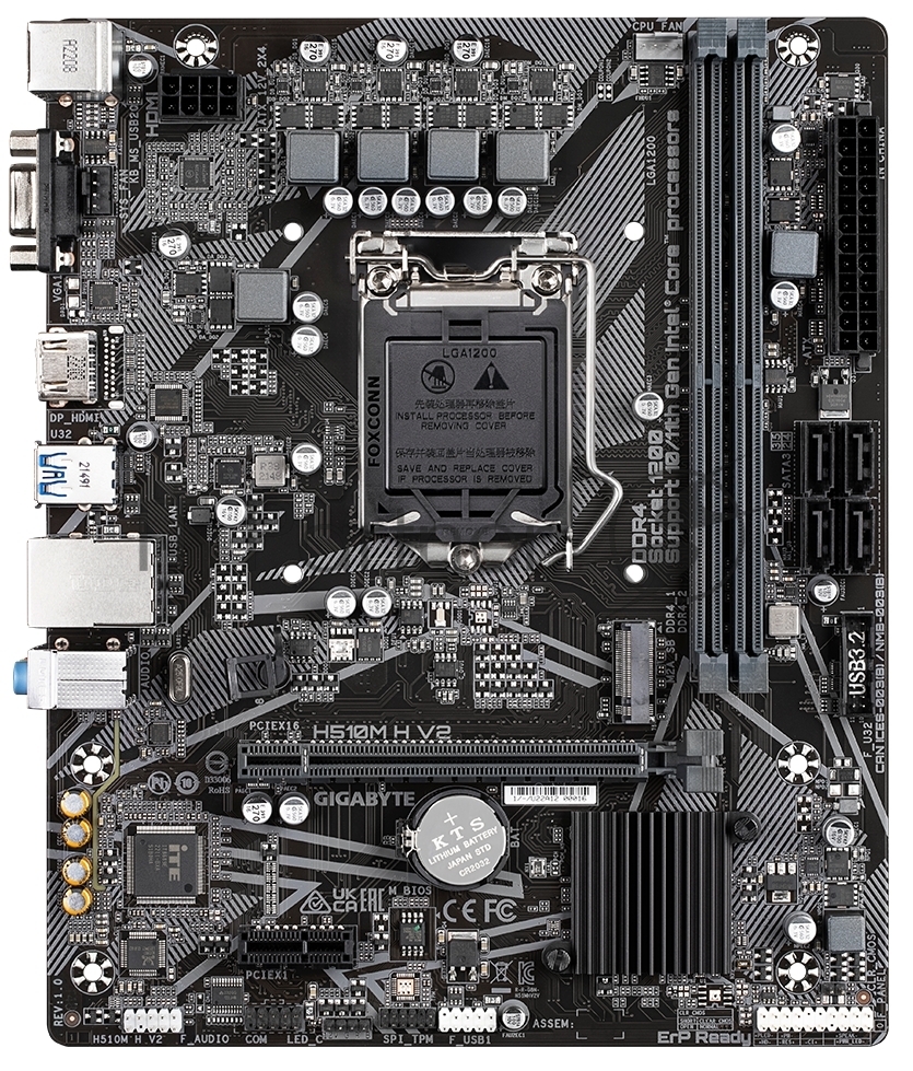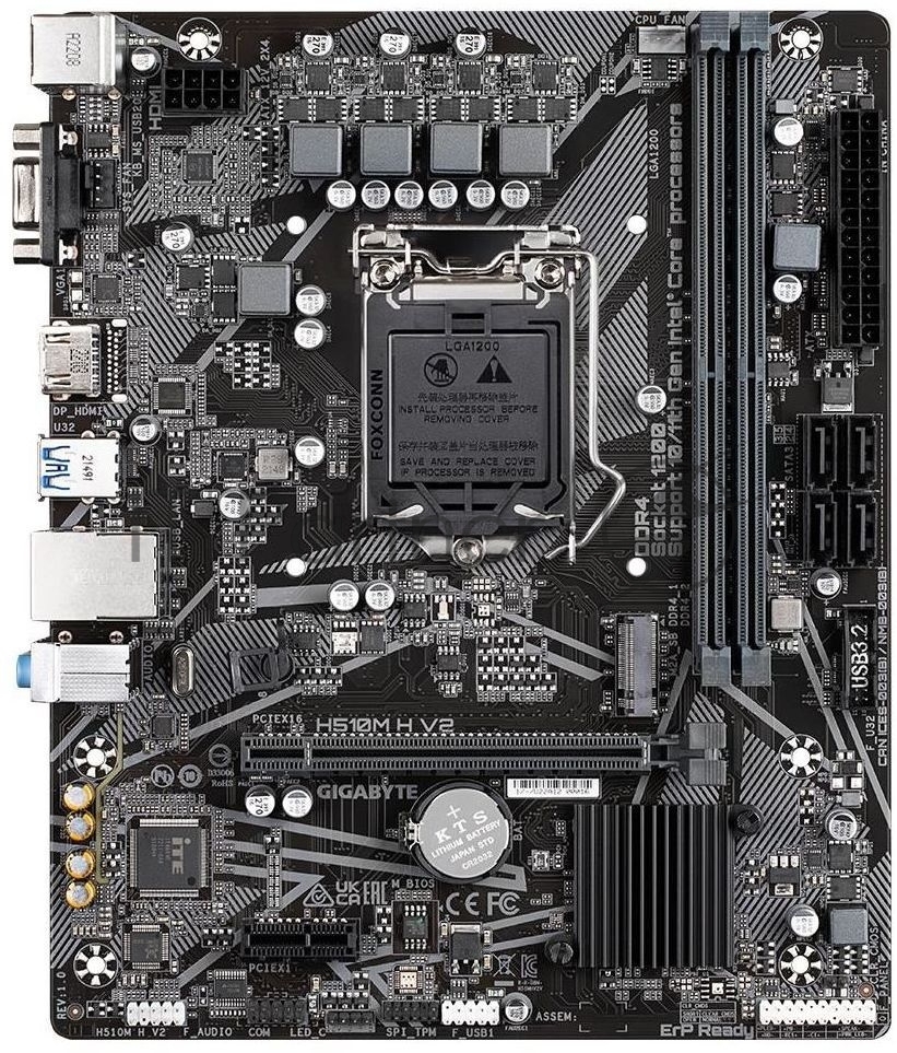 H510M H V2, LGA 1200, Intel H470, 2xDDR4, 4xSATA 6 Гбит/с, 1xM.2, 1xPCIe 3.0 x16, 1xPCIe 3.0 x1, 1xHDMI, 1xVGA, 1x 1Gb LAN, 2xUSB-A 3.2 Gen 1, 4xUSB-A 2.0, 3x3.5 мм, 7.1, Micro ATX