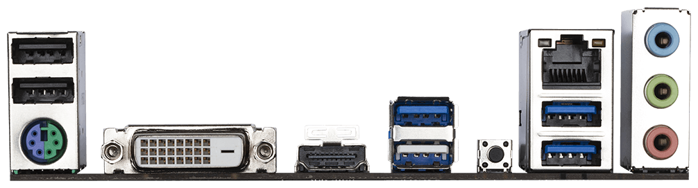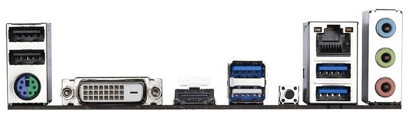 - Разъемы на задней панели: DVI, HDMI, LAN RJ-45, PS/2 (клавиатура/мышь), USB 3.2 Gen1 Type-A x 4