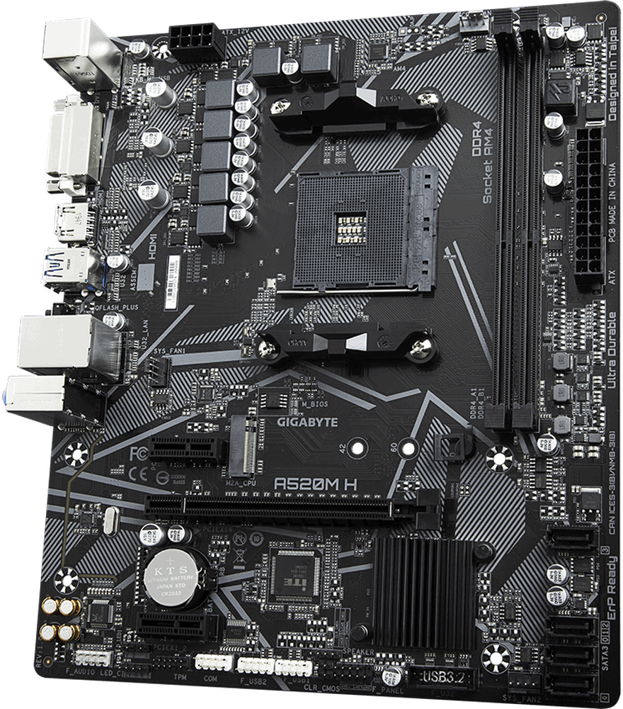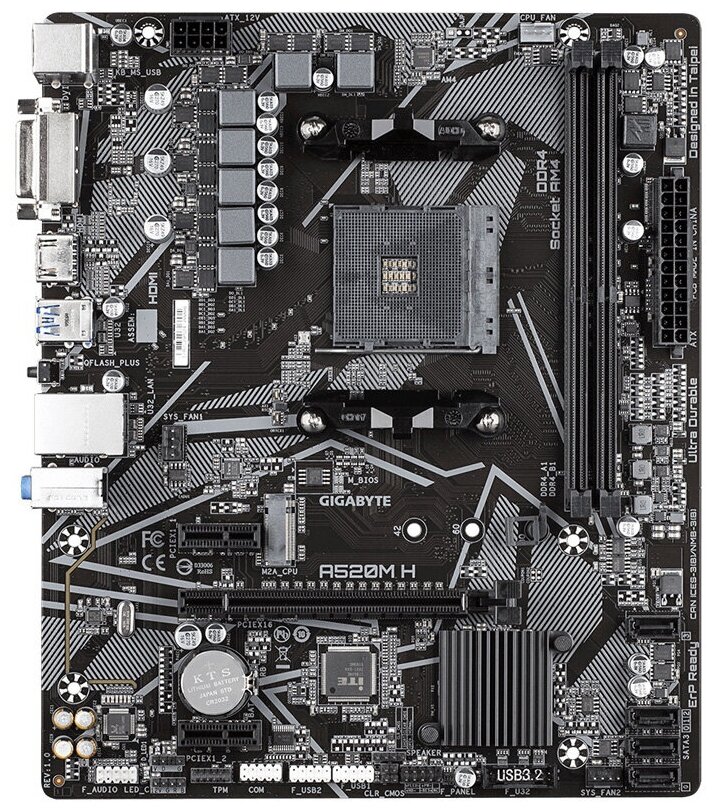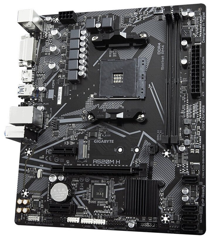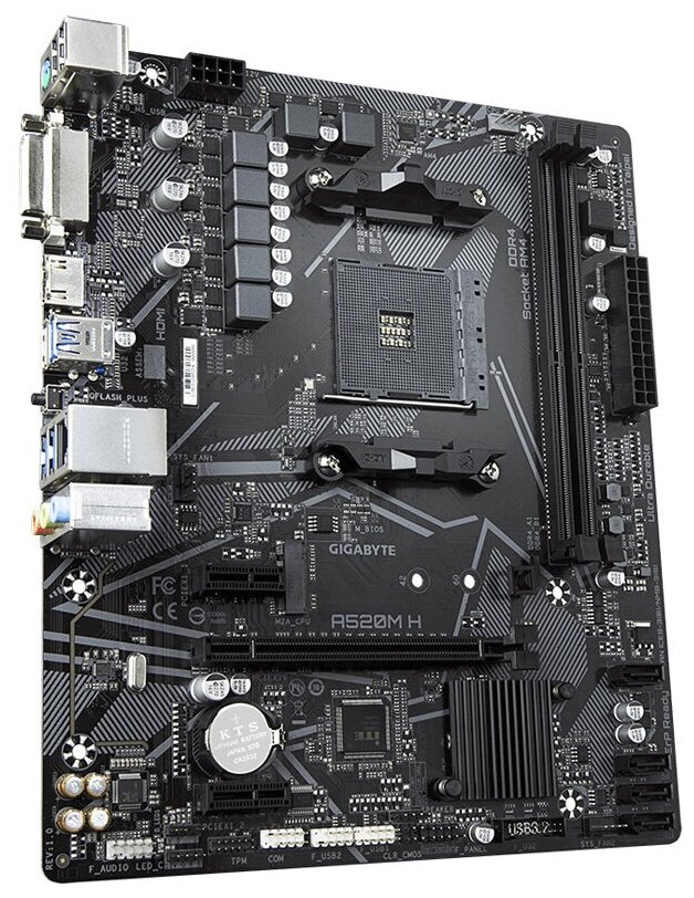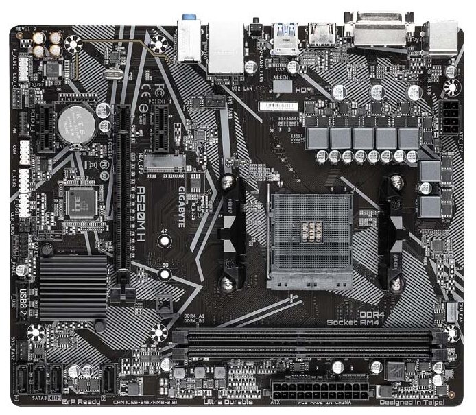 сокет: AM4, название чипсета: AMD A520, форм-фактор: microATX, производитель процессора: AMD, тип памяти: DDR4 DIMM, поддержка ECC/non-ECC, количество слотов памяти: 2, Количество слотов M.2: 1, Количество слотов PCI-E x16: 1, Количество слотов PCI-E x1: 2, беспроводные интерфейсы: без Wi-Fi, максимальная частота памяти: 5000 МГц, Разъем HDMI на задней панели, Поддержка SLI/CrossFire: нет