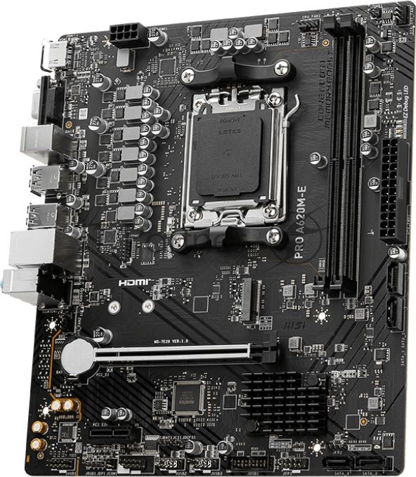 PRO A620M-E, AM5, AMD A620, 2xDDR5, 4xSATA, 1xM.2, 1xPCI-E 4.0 x16, 1xPCI-E 4.0 x1, 1xHDMI, 1xVGA, 1x1Gb LAN, 2xUSB 2.0, 4xUSB 3.2 Gen 1, 3x3.5 мм, 7.1, Micro-ATX