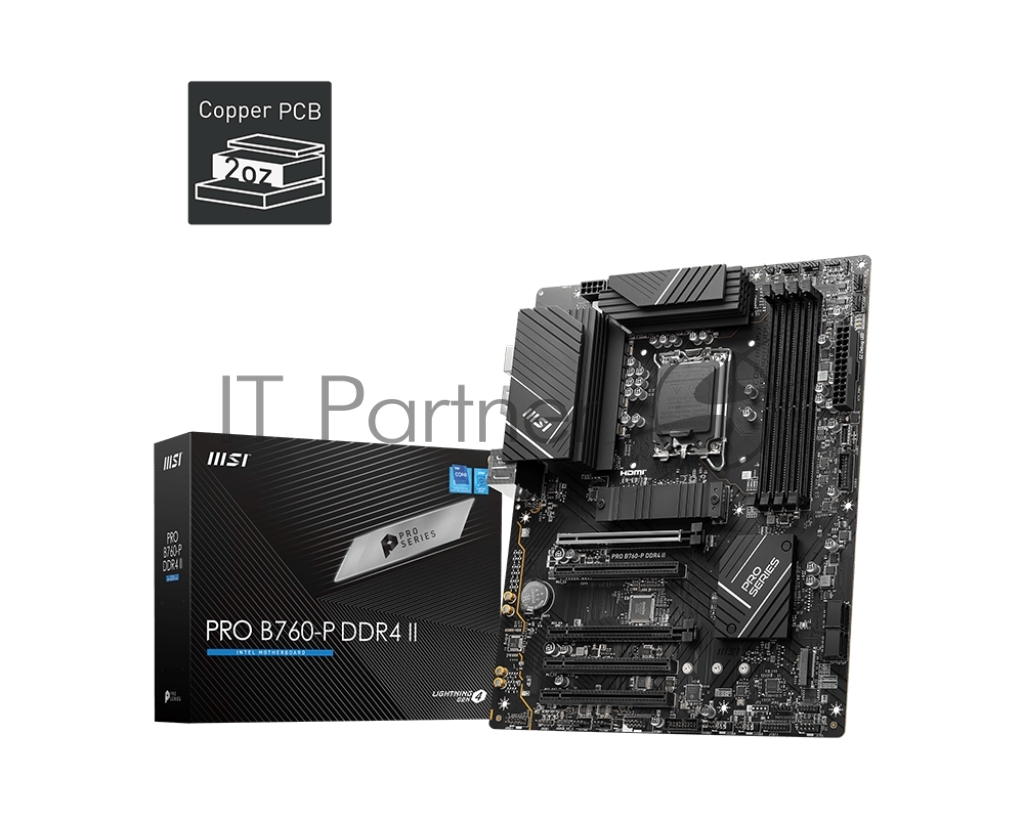 PRO B760-P DDR4 II, LGA 1700, Intel B760, 4xDDR4, 4xSATA, 2xM.2, 1xPCIe 4.0 x16, 1xPCIe 4.0 x4, 3xPCIe 3.0 x1, 1xHDMI, 1xDP, 1x 2.5Gb LAN, 2xUSB-A 2.0, 2xUSB-A 3.2 Gen 1, 1xUSB-C 3.2 Gen 2, 5x3.5 мм, 7.1, ATX