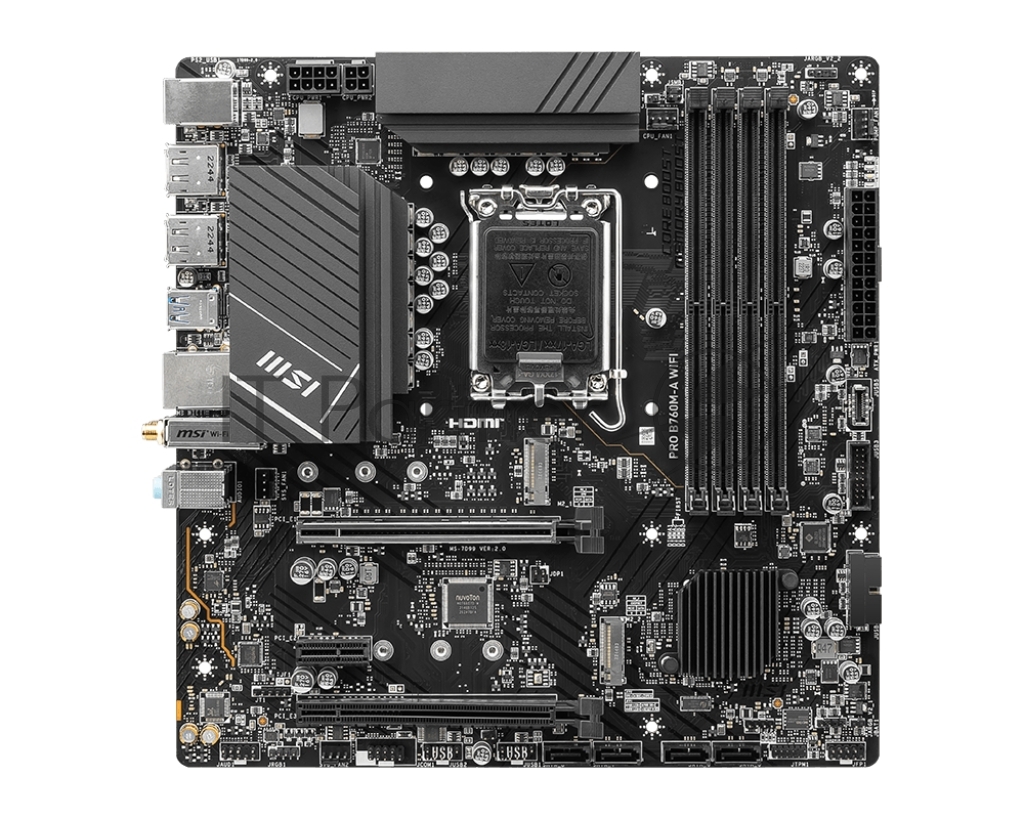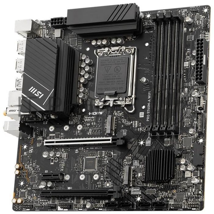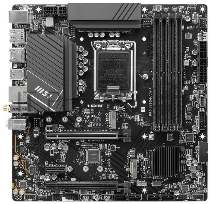 PRO B760M-A WIFI, LGA 1700, Intel B760, 4xDDR5, 4xSATA, 2xM.2, 1xPCI-E 4.0 x16, 1xPCI-E 4.0 x4, 2xHDMI, 2xDP, 1x2.5Gb LAN, 2xUSB-A 2.0, 2xUSB 3.2 Gen 1, 2xUSB 3.2 Gen 2, 3x3.5 мм, 7.1, Micro-ATX