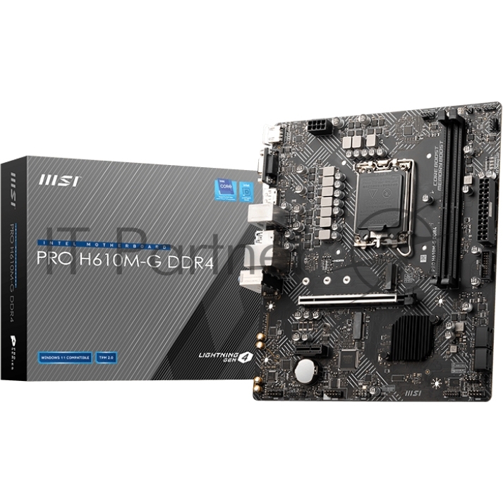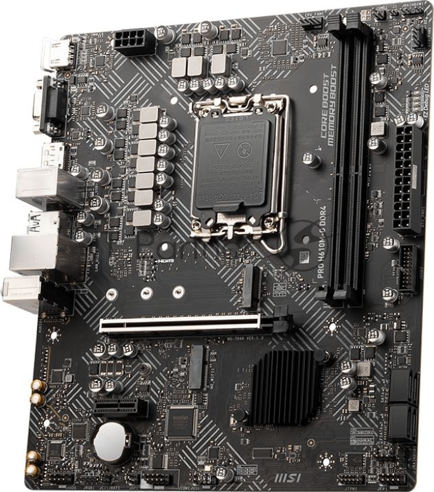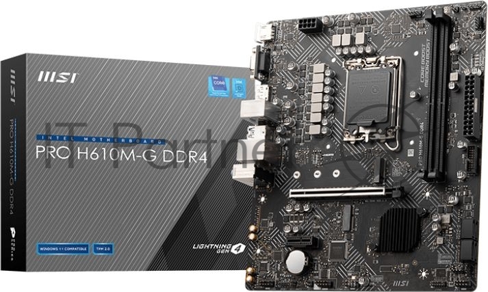 PRO H610M-G, LGA 1700, Intel H610, 2xDDR5, 4xSATA, 1xM.2, 1xPCIe 4.0 x16, 1xPCIe 3.0 x1, 1xHDMI, 1xDP, 1xVGA, 1xRJ45 1Gb, 2xUSB-A 3.2 Gen 1, 4xUSB-A 2.0, 3x3.5мм, 7.1, mATX