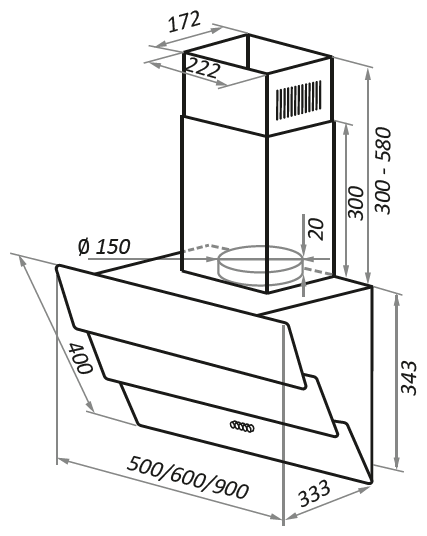 форм-фактор: наклонная, ширина: 50 см, глубина: 33.30 см, режимы работы: отвод / циркуляция, максимальная производительность: 700 м³/час, фильтр: жировой, тип управления: механическое, тип освещения: светодиодная лампа, максимальный уровень шума: 53 дБ, ширина встраивания: 50 см, диаметр патрубка воздуховода: 150 мм, мощность двигателя: 100 Вт, потребляемая мощность: 102 Вт