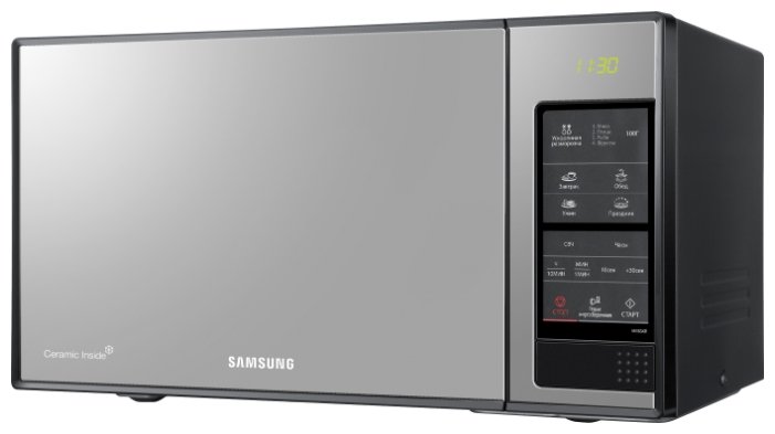 Микроволновая печь Samsung/ 850 Вт, 23л, соло, БИОкерамика, 30 рецептов русского меню, зеркальный, сенсор, черный