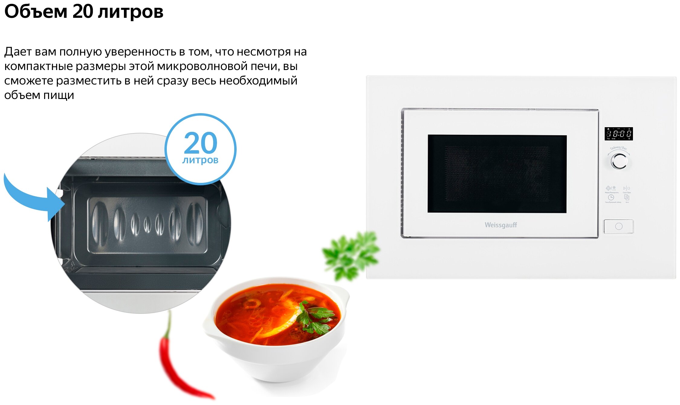 Печь свч встраиваемая Weissgauff HMT 202