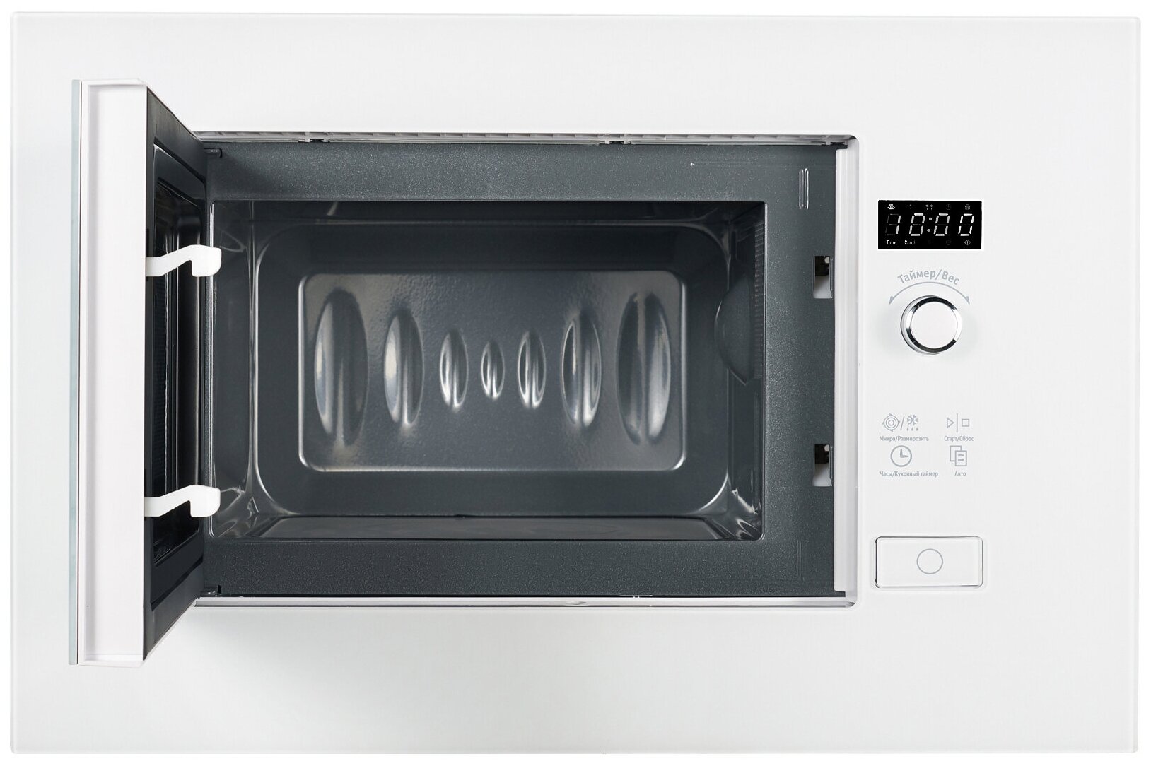 Нужна была белая встраиваемая СВЧ, чтобы поместилась в верхний кухонный шкаф. Выбрали эту исходя из внешнего вида, цены и отзывов. Забавно, что у нее нет тарелки, еда не крутится. Это полюс, тк это проще в уборке. Греет хорошо, но не мего-мощь. Всё- таки она довольно компактная. Размораживать не пробовали. Большая тарелка не поместится, скорее для средней и суповой миски. Достоинства: