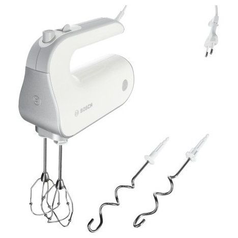 Вендор: BOSCH; Тип : ручной; Мощность: 500 Вт; Количество скоростей: 5; Импульсный режим: ДА; Венчик для взбивания: ДА; Крюки для теста: ДА; Универсальный измельчитель: ДА; Насадка блендер: ДА; Цвет миксера: белый;