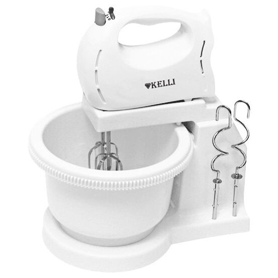 Миксер Kelli KL-5049, белый; Миксер Kelli KL-5049, белый; 4.3; 2 отзыва; Характеристики: ; Задать вопрос; 2 241 ₽; 2 490 ₽Скидка: ; ‒10%; Оплата частями; В корзину; Описание; стационарный, с вращающейся рабочей чашей, мощность 250 Вт, 5 скоростей; Подробные Характеристики: ; Общие Характеристики: ; Тип ; стационарный; Чаша; вращающаяся, 2.50 л, пластик; Мощность; 250 Вт; Число скоростей; 5; Насадки; крючки для замешивания теста, венчик для взбивания; Количество насадок; 4; Материал корпуса; пластик; Особенности; Приспособление для хранения насадок; есть; Кнопка отсоединения насадок; есть