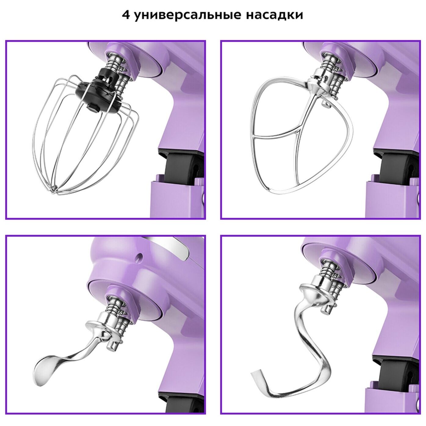 Основные Характеристики: ; Тип планетарный стационарный; Мощность 1400 Вт; Число скоростей 6; Дополнительные режимы импульсный режим; Количество насадок 4; Материал корпуса пластик; Материал чаши нержавеющая сталь; Объем чаши 5.7 л; Насадки; венчик для взбивания, крючки для замешивания теста, насадка для приготовления пюре; Длина сетевого шнура 1.2 м; Вес; 4.24 кг; Дополнительная информация; Плавное изменение скорости, Отключение при перегреве, Таймер выключения, Индикация выбранной мощности