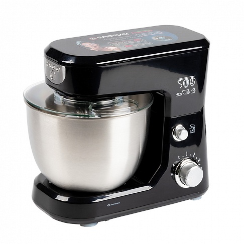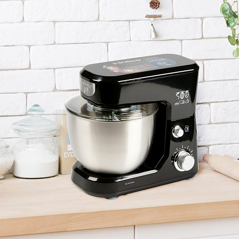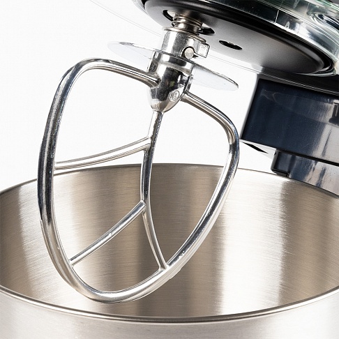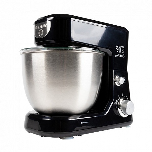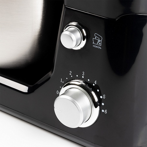 стационарный миксер; мощность 600 Вт; крючки для замешивания теста, венчик для взбивания