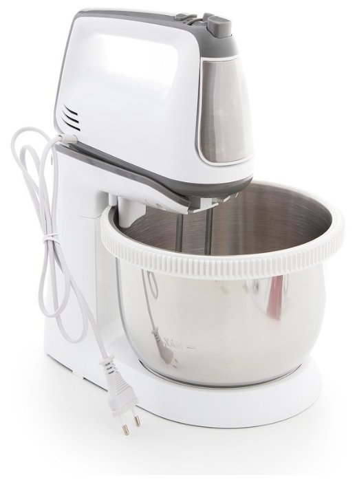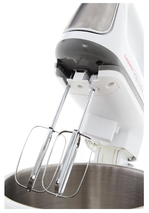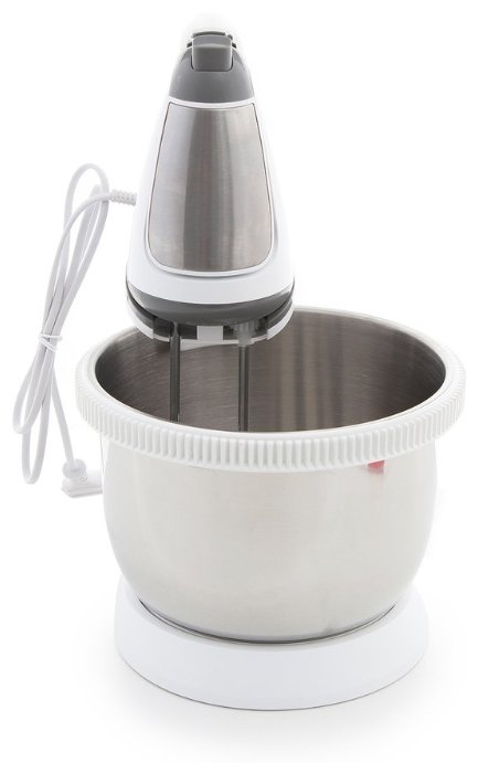 стационарный миксер; мощность 500 Вт; крючки для замешивания теста, венчик для взбивания; кнопка отсоединения насадок