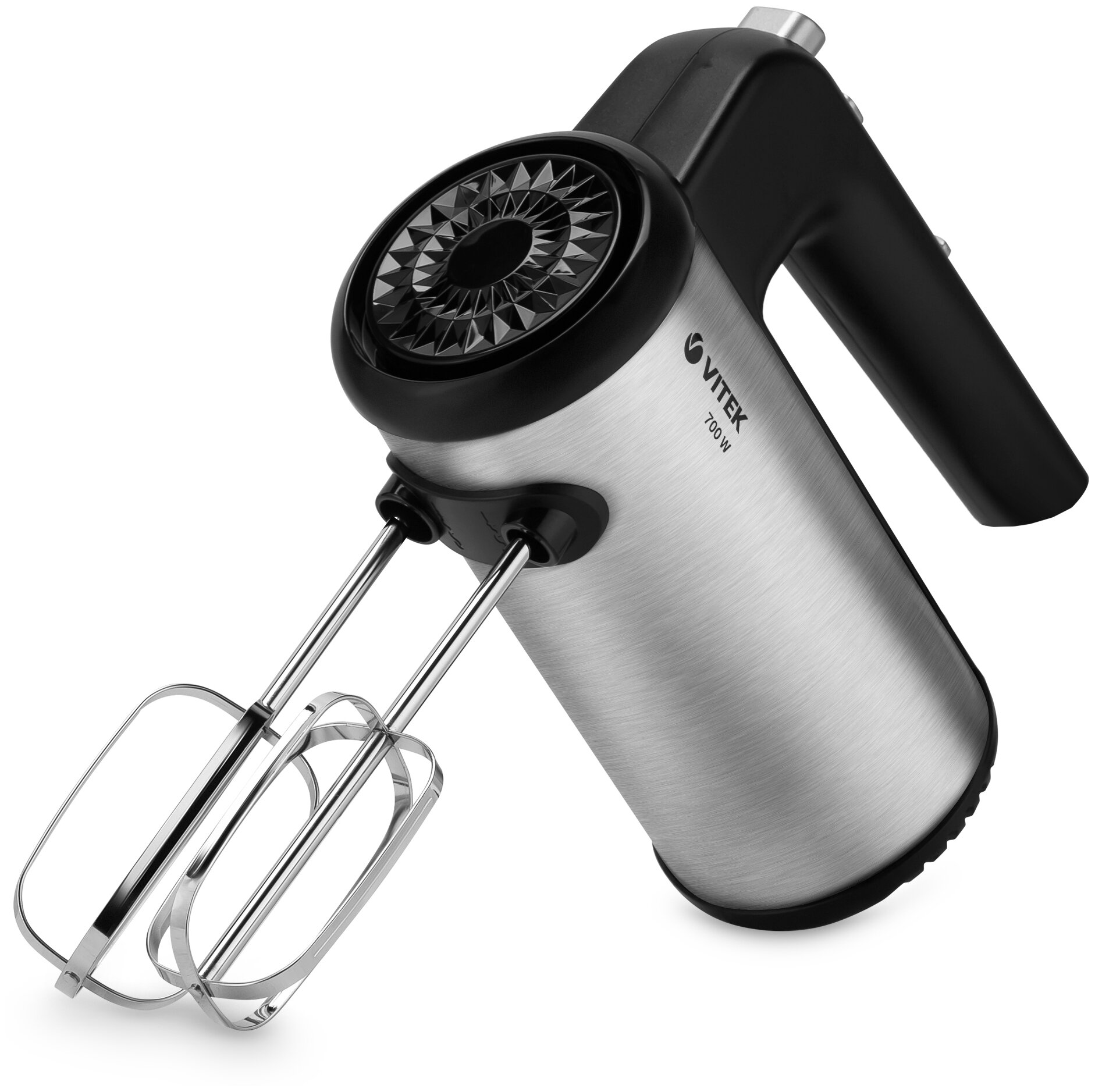 Тип ; ручной; Мощность; 700 Вт; Число скоростей; 5; Дополнительные режимы; турбо; Насадки; венчик для взбивания, крючки для замешивания теста; Количество насадок; 4; Материал корпуса; пластик/металл; Кнопка отсоединения насадок; есть
