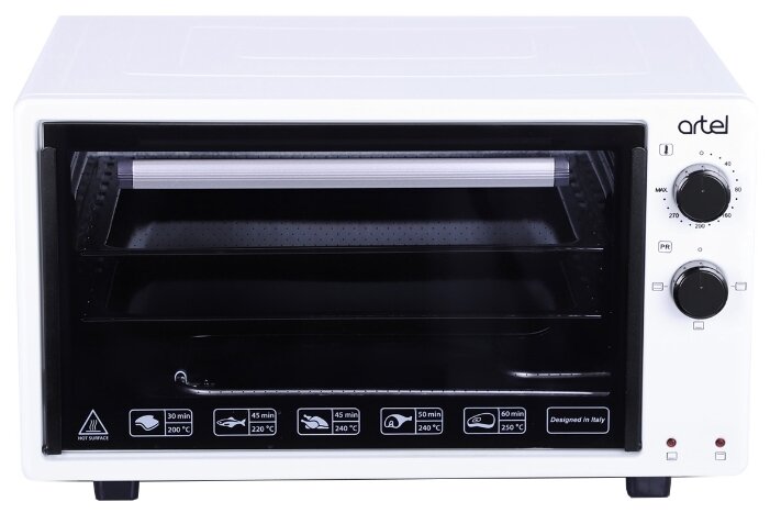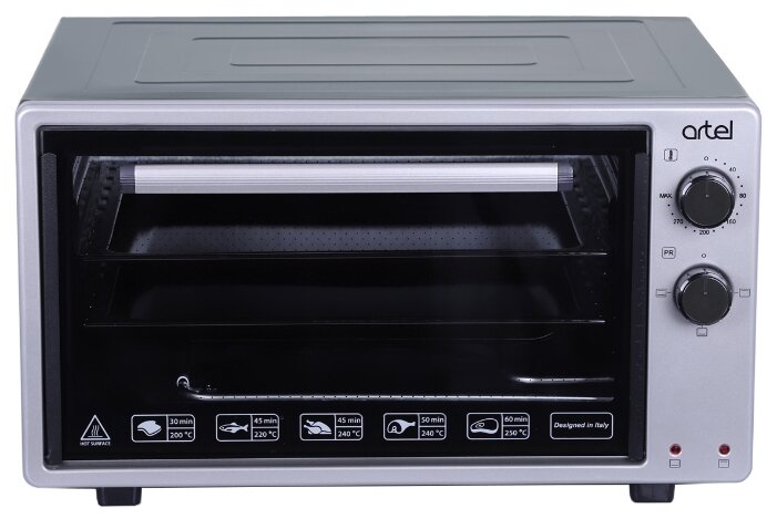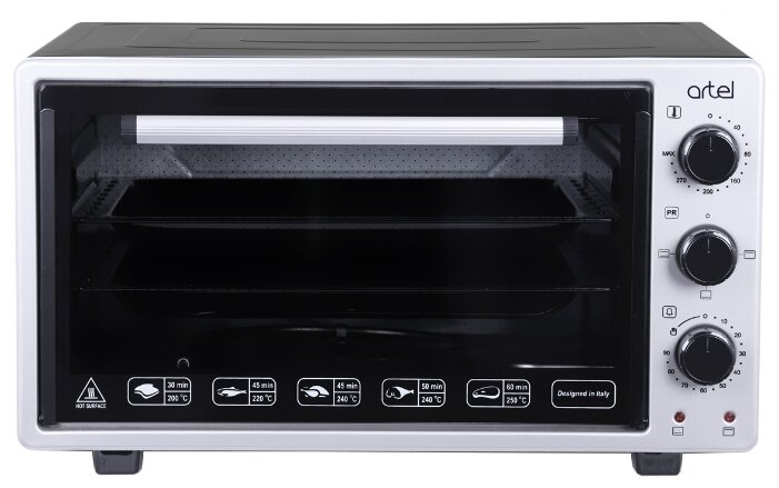 объём камеры 32 л; режимы: верхний нагрев, нижний нагрев, верхний+нижний нагрев; максимальная температура нагрева: 300 °C; механическое управление