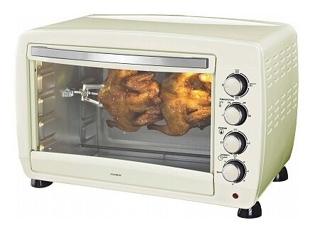 объём камеры: 45 л; режимы: верхний гриль, верхний нагрев, нижний нагрев, конвекция, верхний+нижний нагрев; максимальная температура нагрева: 250 °C; таймер: механический, до 60 мин; термостат: да; материал корпуса: металл; комплектация: вертел, решётка, противень, поддон для сбора крошек, держатель для противня/решётки; особенности: внутренняя подсветка, механическое управление; ШхВхГ: 56.10х36.90х42.50 см