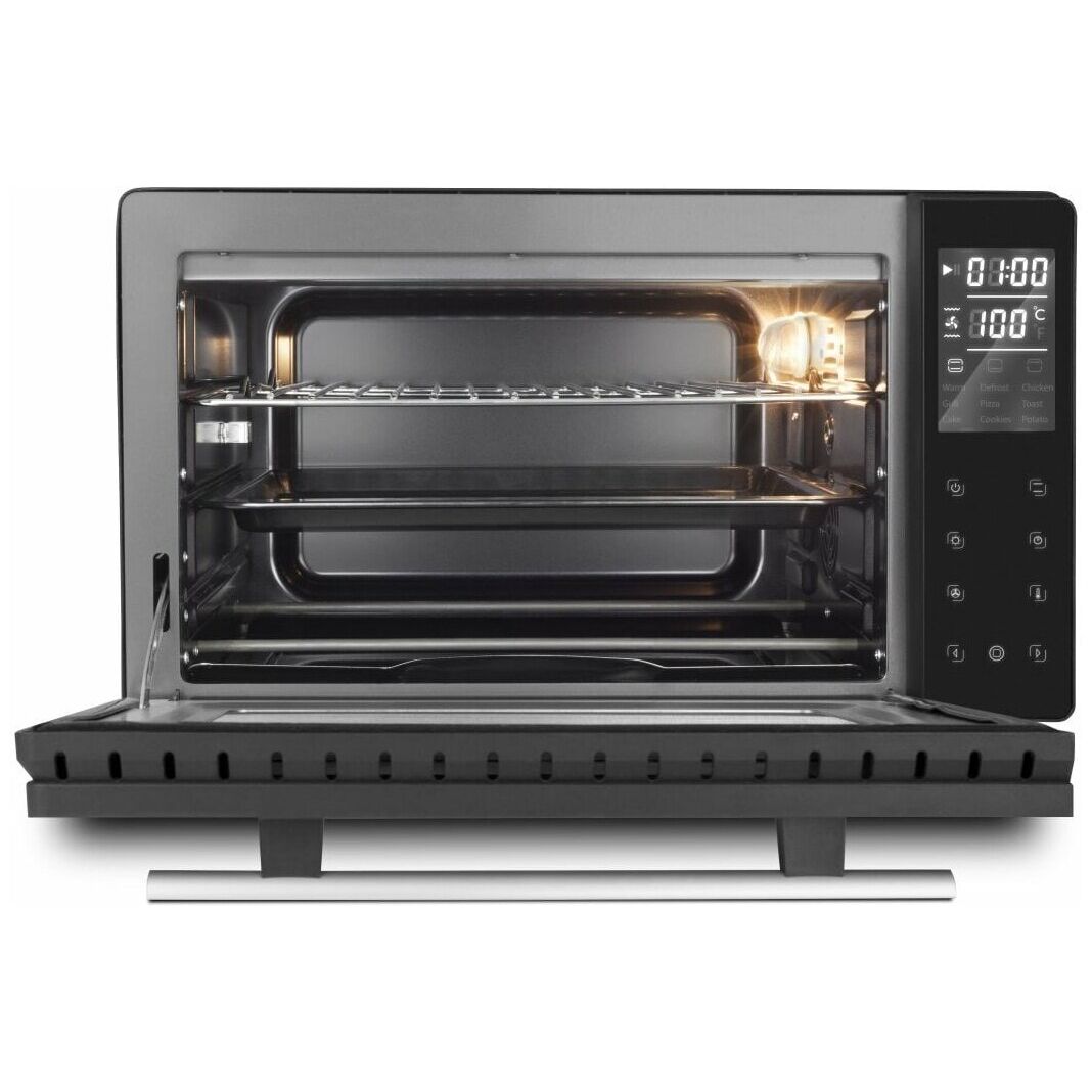 Общие характеристики: Тип: мини-печь: Режимы: автоматические программы приготовления, верхний гриль, верхний нагрев, верхний+нижний нагрев, конвекция, нижний нагрев: Максимальная температура нагрева: 230 °C: Минимальная температура нагрева: 30 °C: Особенности: внутренняя подсветка, дисплей, таймер: Управление: сенсорное: Комплектация: вертел, держатель для противня/решётки, поддон для сбора крошек, противень, решётка: Дизайн: традиционный: Дополнительная информация: 9 автоматических программ; камень для пиццы в комплекте; количество противней в комплекте: 1: Габариты и вес: Глубина: 40 см: Ширина: 48 см: Высота: 30 см: Вес: 8.45 кг: Технические характеристики: Объём камеры: 26 л: Номинальная мощность: 1500 Вт;;;;